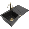 Mexen Cesar 1-Bowl Granite Sink with Drainer and Carla Kitchen Tap, Grey - 6514-71-670700-50