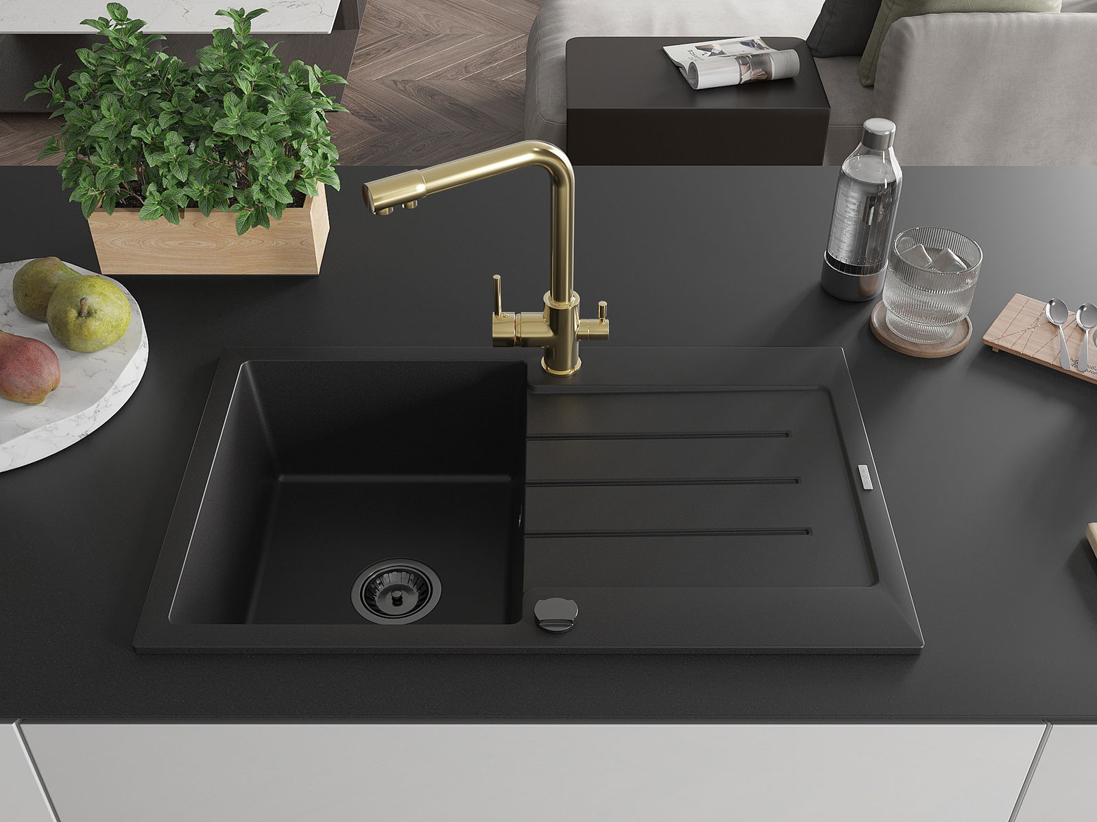 The sink is made from high-quality granite. It serves as an elegant and, above all, practical addition to any kitchen, regardless of its style. The high quality and durability of granite ensure many years of use.