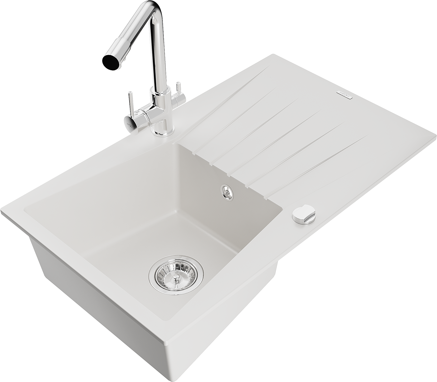 Mexen Cesar granite sink with 1 compartment, drainer and Duero kitchen tap, white - 6514-20-671600-00