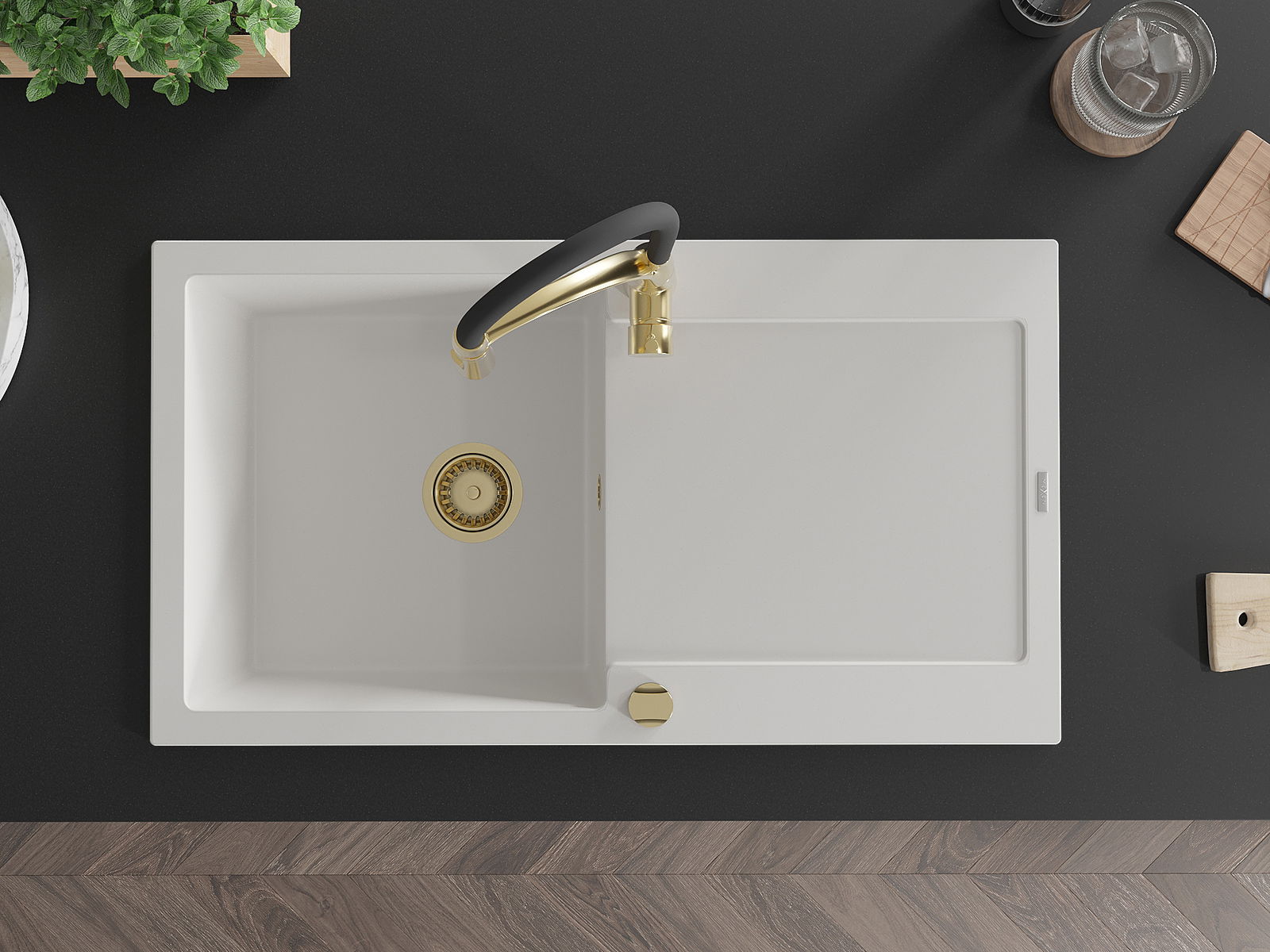 The surface of the sink is resistant to stains and discolouration, making it easy to maintain cleanliness and retain its colour for a long time of use. An aesthetic and practical addition to any kitchen.