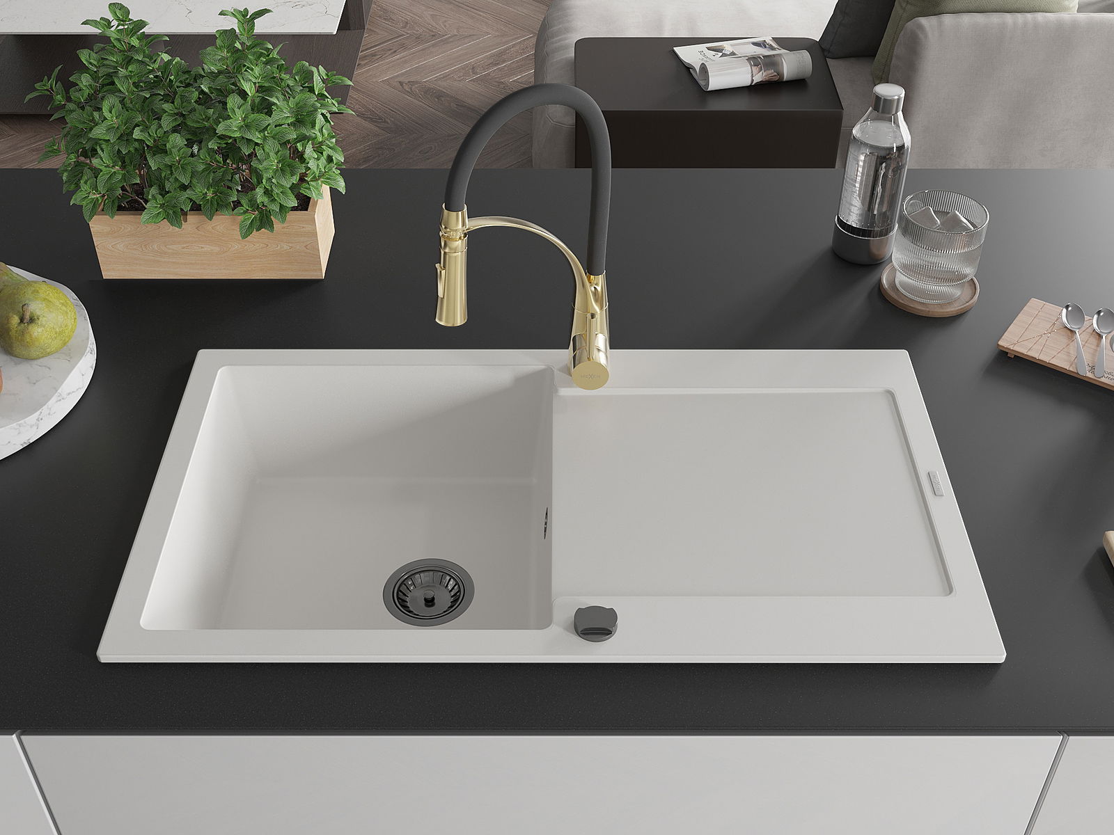 Choosing a sink with a draining board is a practical solution that allows you to set aside washed dishes or vegetables and fruits. The draining board makes daily cooking easier and helps maintain order in the kitchen.