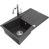 Mexen Cesar granite sink 1-bowl with drainer and Carla kitchen tap, black - 6514-77-670700-00