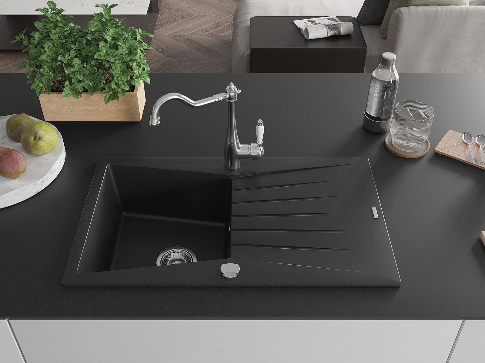The sink is made from high-quality granite. It serves as an elegant and, above all, practical addition to any kitchen, regardless of its style. The high quality and durability of granite ensure many years of use.