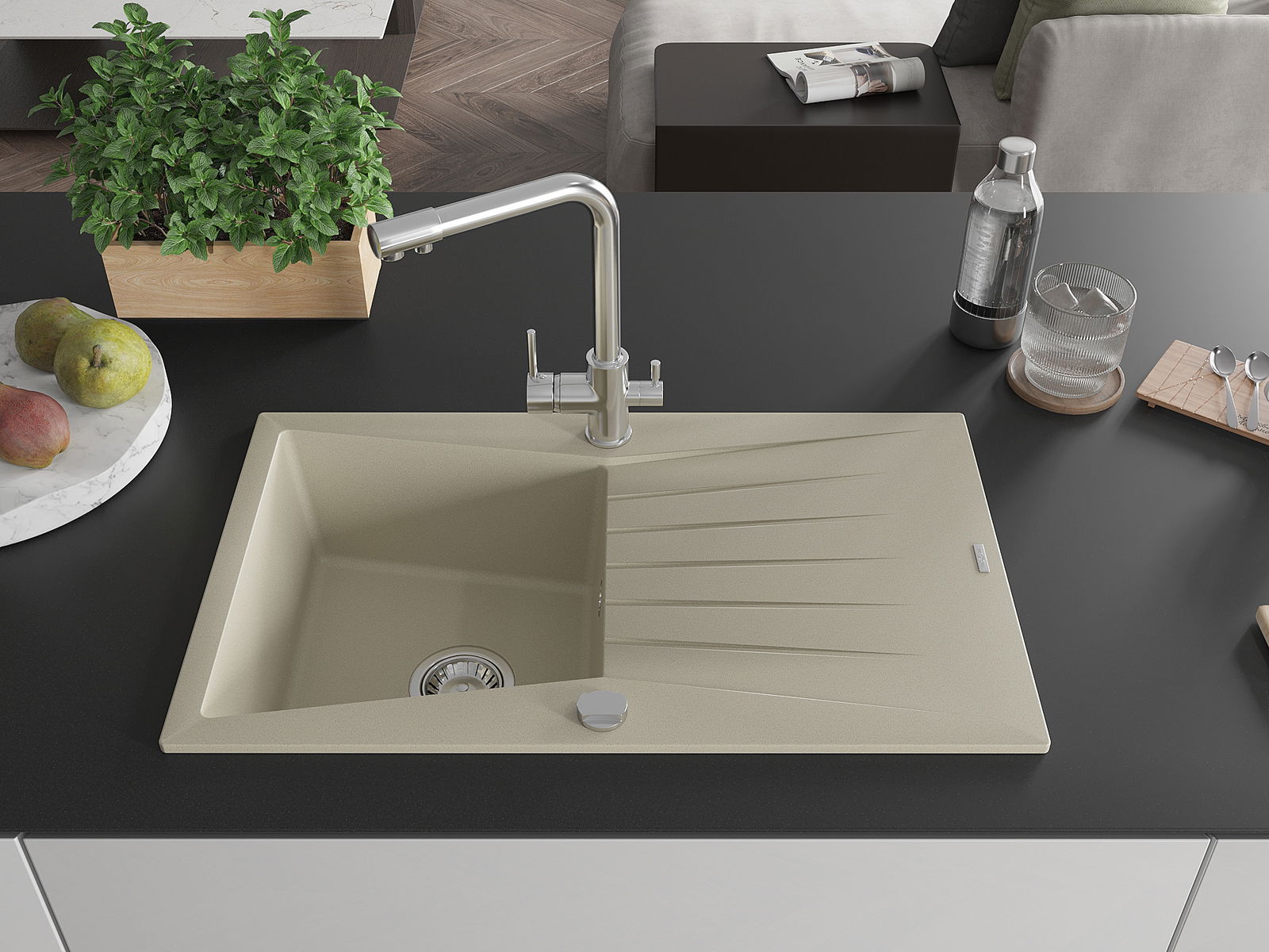 The sink is made from high-quality granite. It serves as an elegant and, above all, practical addition to any kitchen, regardless of its style. The high quality and durability of granite ensure many years of use.