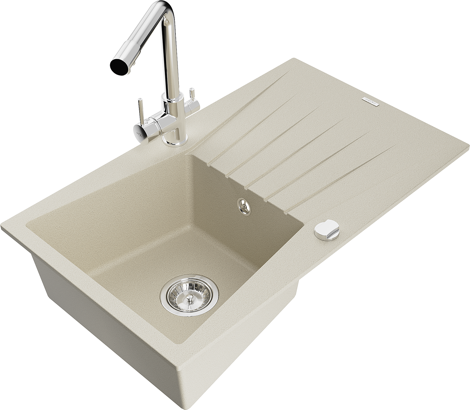 Mexen Cesar single-bowl granite sink with drainer and Duero kitchen tap, beige - 6514-69-671600-00