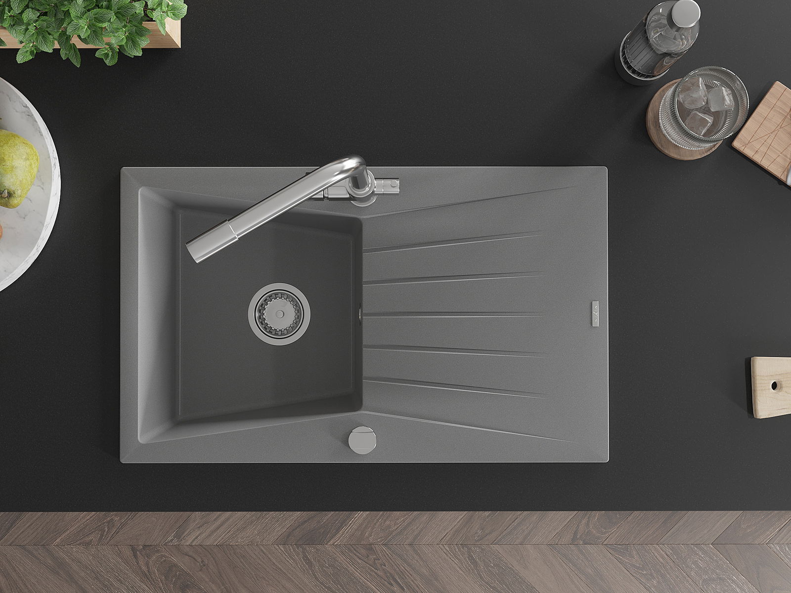 The sink is made from high-quality granite. It serves as an elegant and, above all, practical addition to any kitchen, regardless of its style. The high quality and durability of granite ensure many years of use.