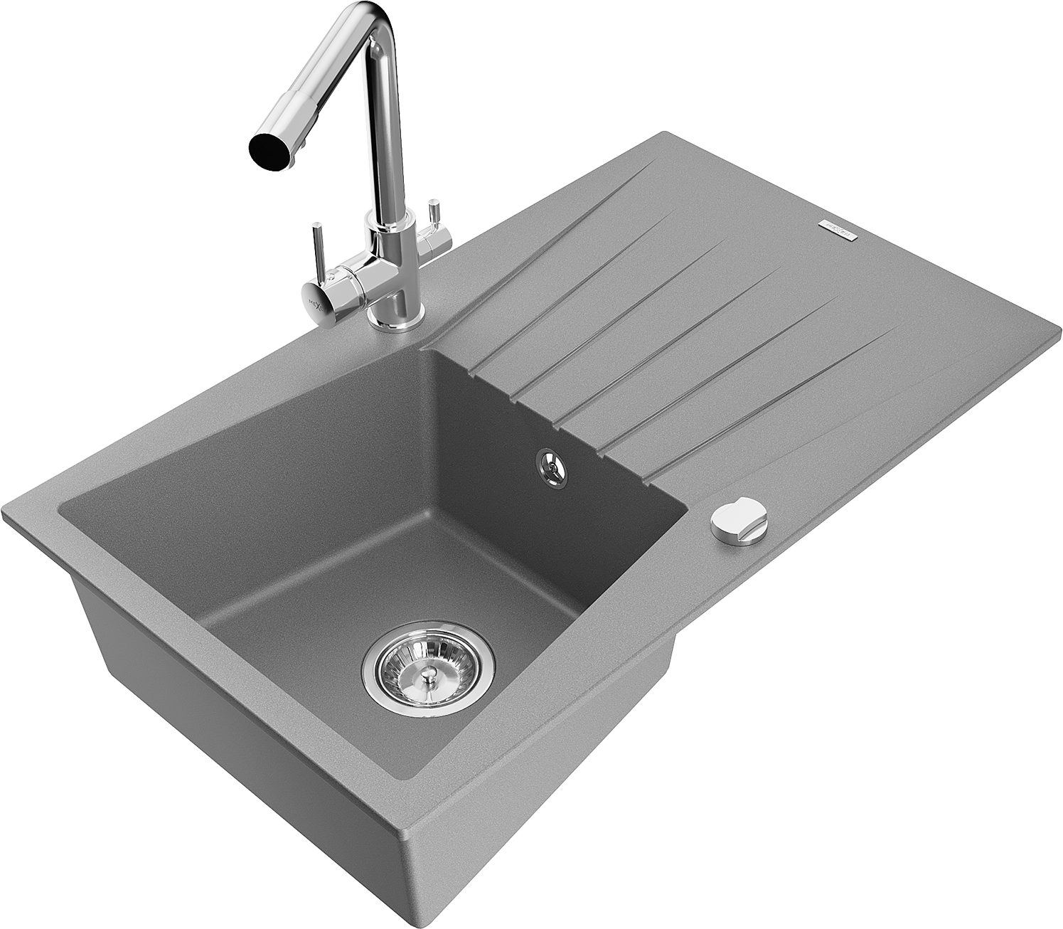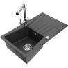 Mexen Cesar granite kitchen sink 1-bowl with drainer and Duero kitchen tap, grey - 6514-71-671600-00