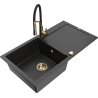 Mexen Leo granite sink 1-bowl with drainer and Aster kitchen tap, grey - 6501-71-73450-57-G