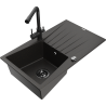 Mexen Cesar granite sink 1-bowl with drainer and Duero kitchen tap, black/silver metallic - 6514-73-671600-70-B