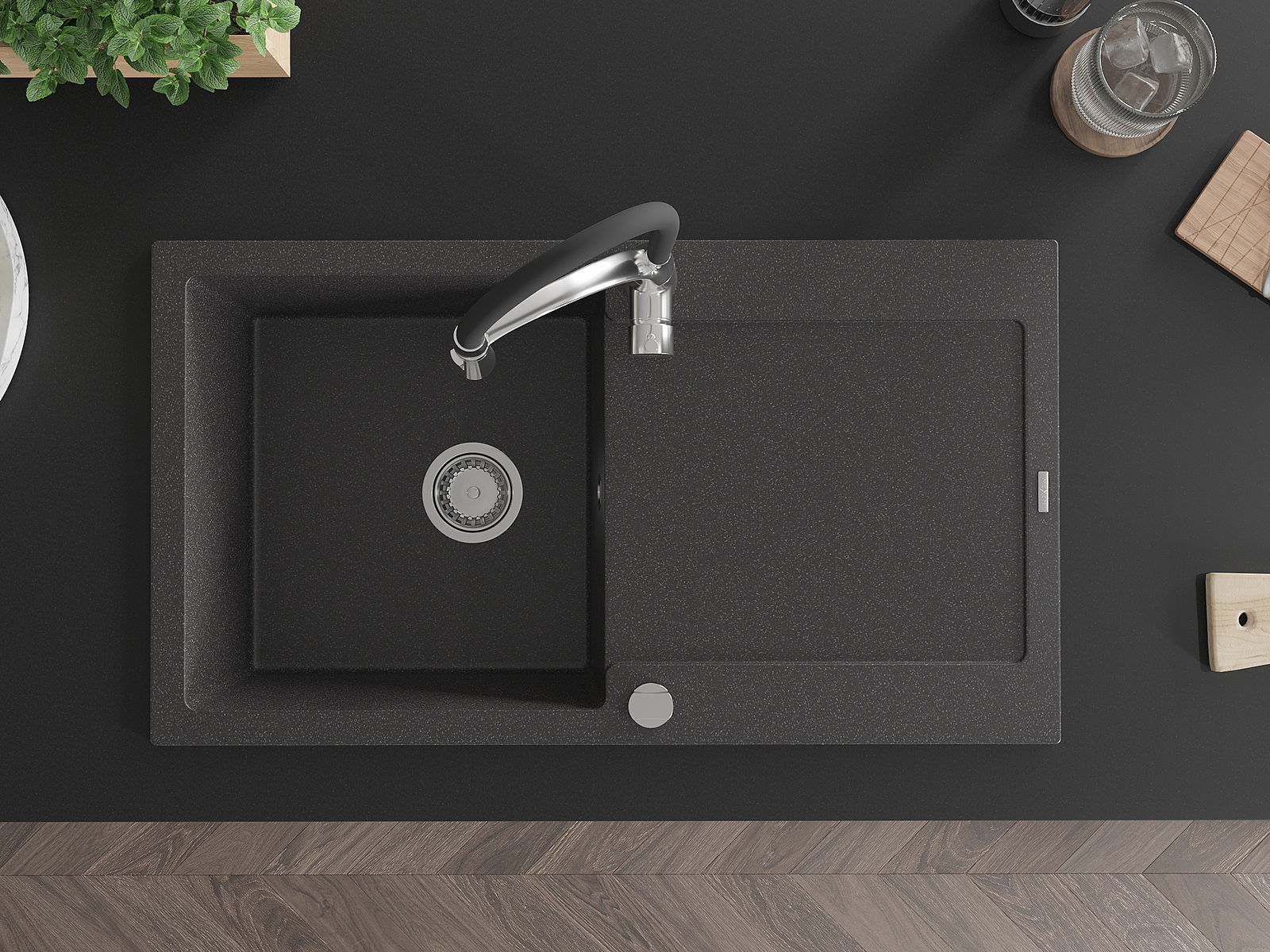 The sink is made from high-quality granite. It serves as an elegant and, above all, practical addition to any kitchen, regardless of its style. The high quality and durability of granite ensure many years of use.