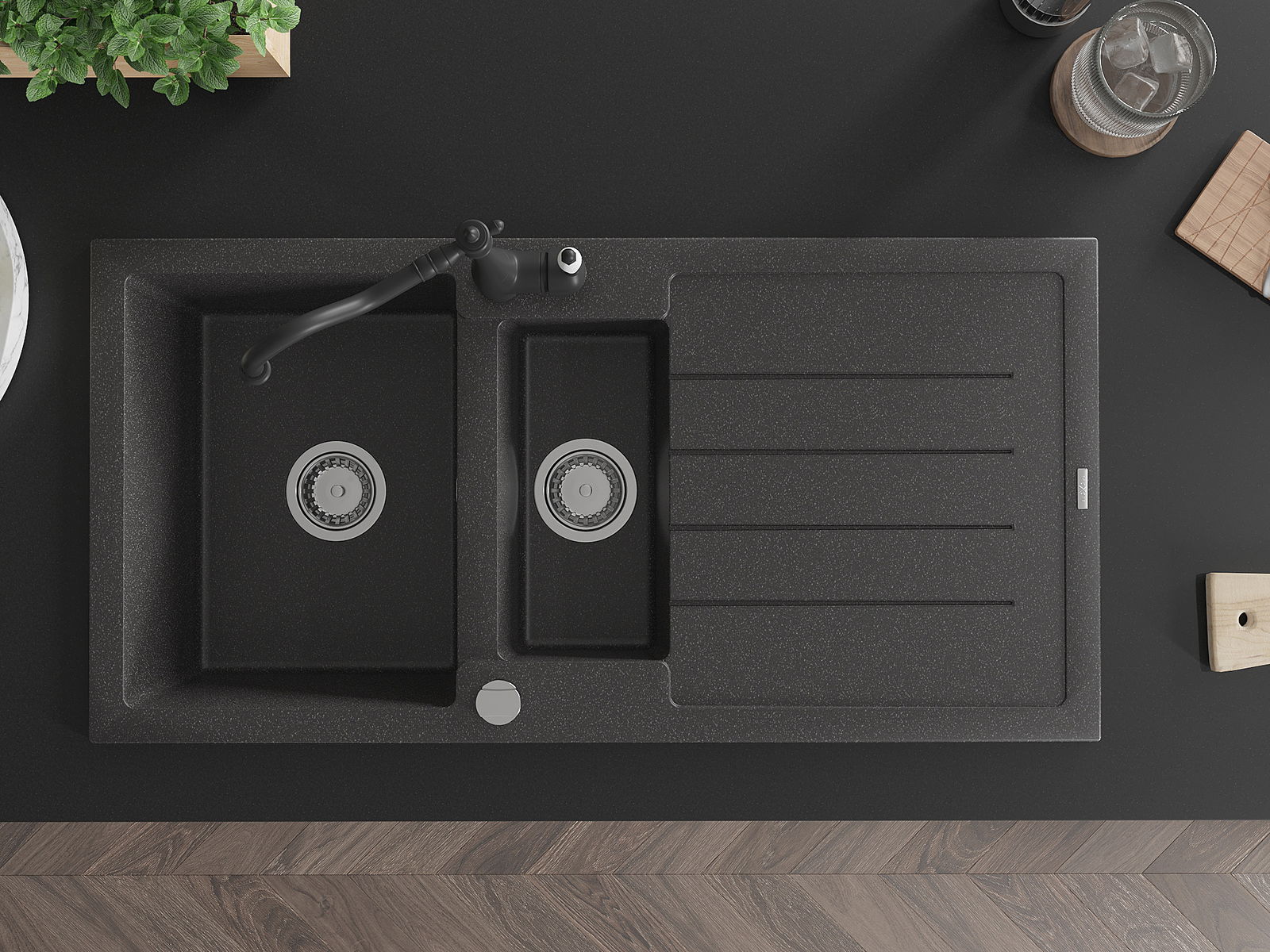Choosing a sink with a draining board is a practical solution that allows you to set aside washed dishes or vegetables and fruits. The draining board makes daily cooking easier and helps maintain order in the kitchen.