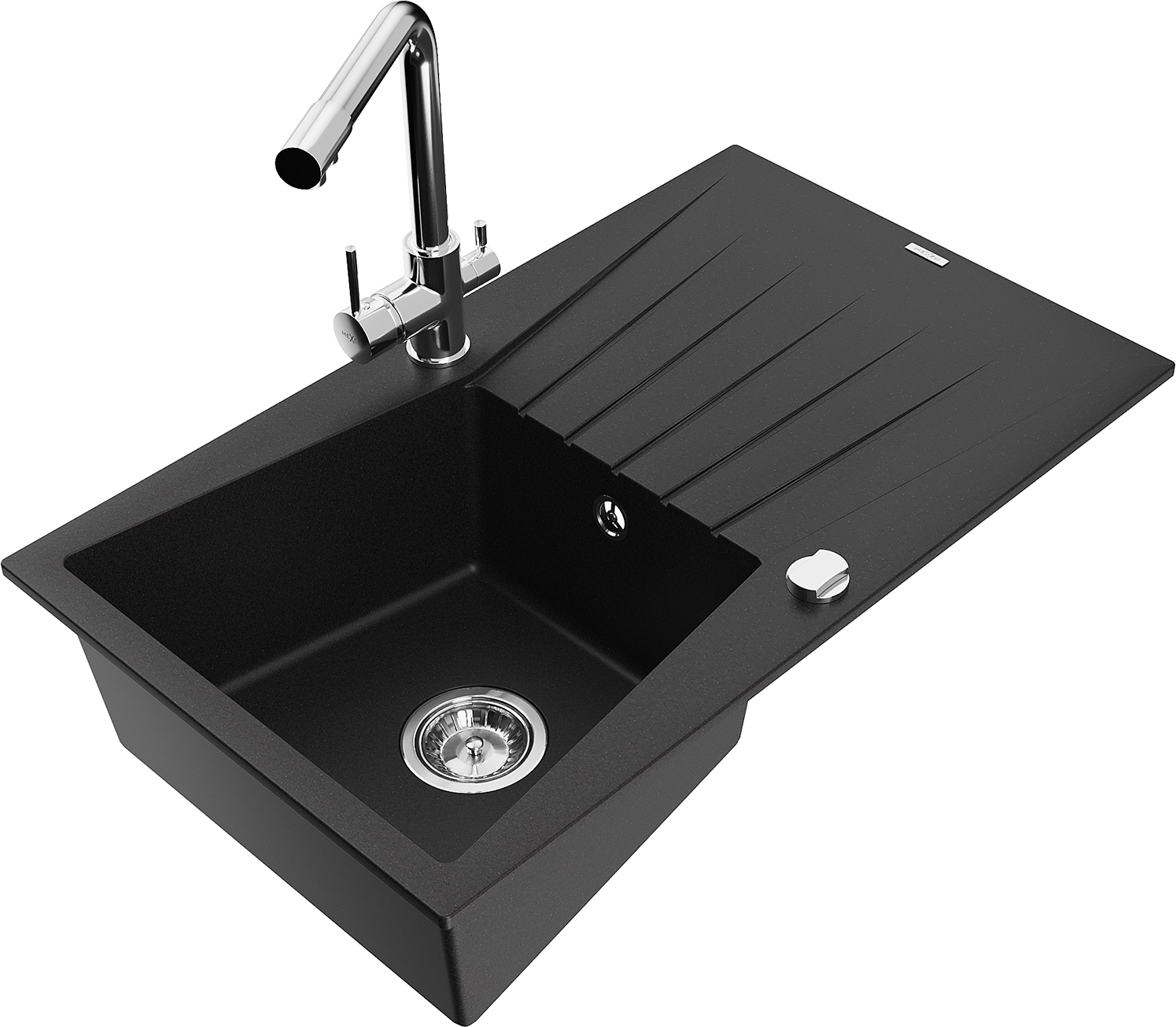 Mexen Cesar granite sink 1-bowl with drainer and Duero kitchen tap, black - 6514-77-671600-00