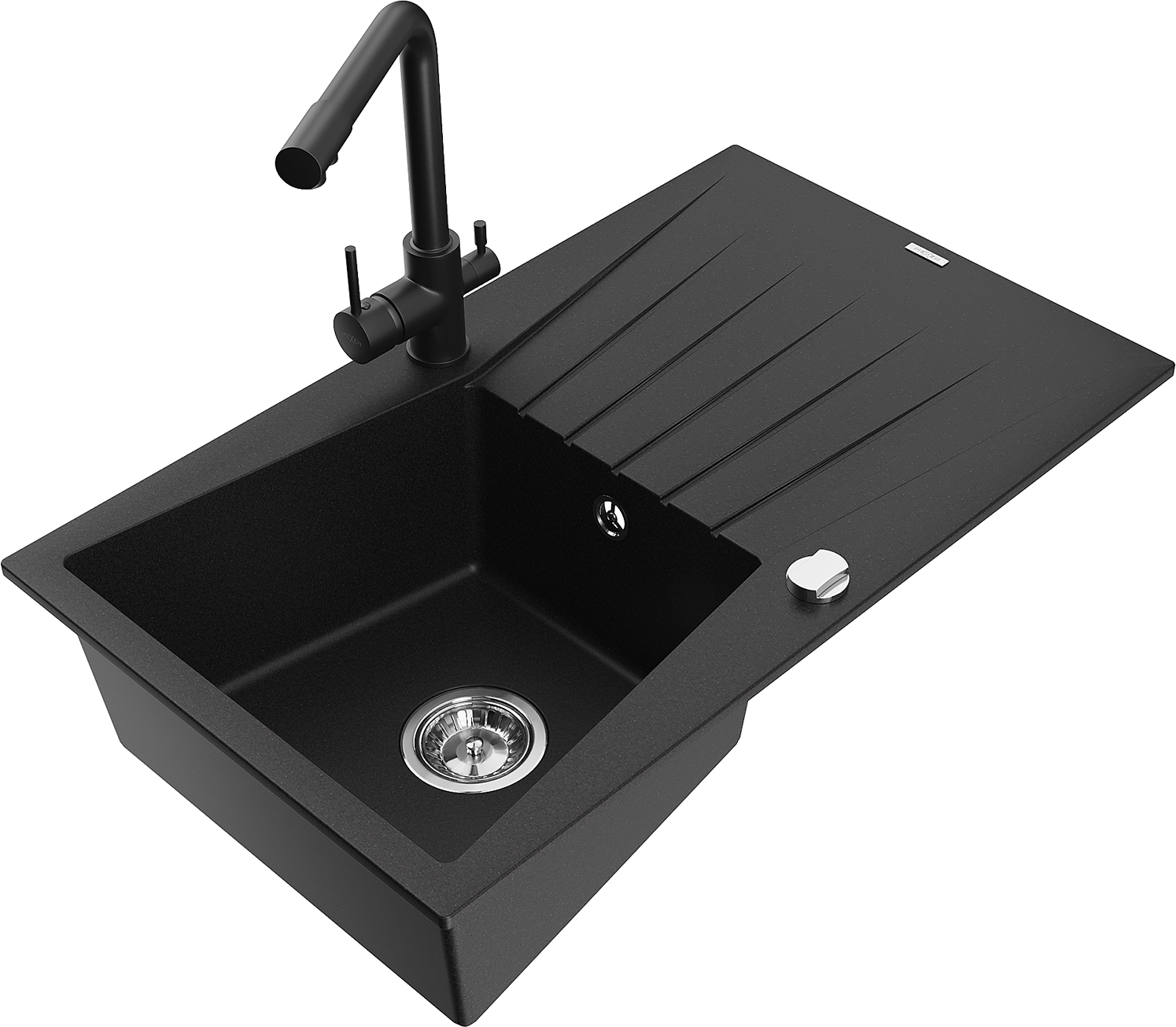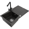 Mexen Cesar 1-Bowl Granite Sink with Drainer and Duero Kitchen Tap, Black - 6514-77-671600-70