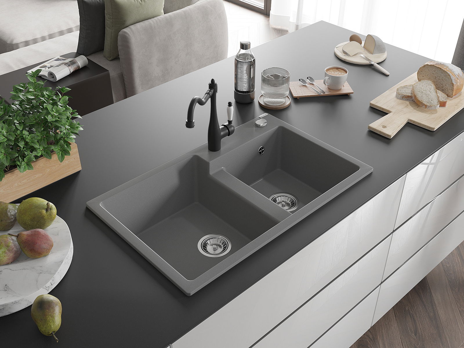 The sink is made from high-quality granite. It serves as an elegant and, above all, practical addition to any kitchen, regardless of its style. The high quality and durability of granite ensure many years of use.