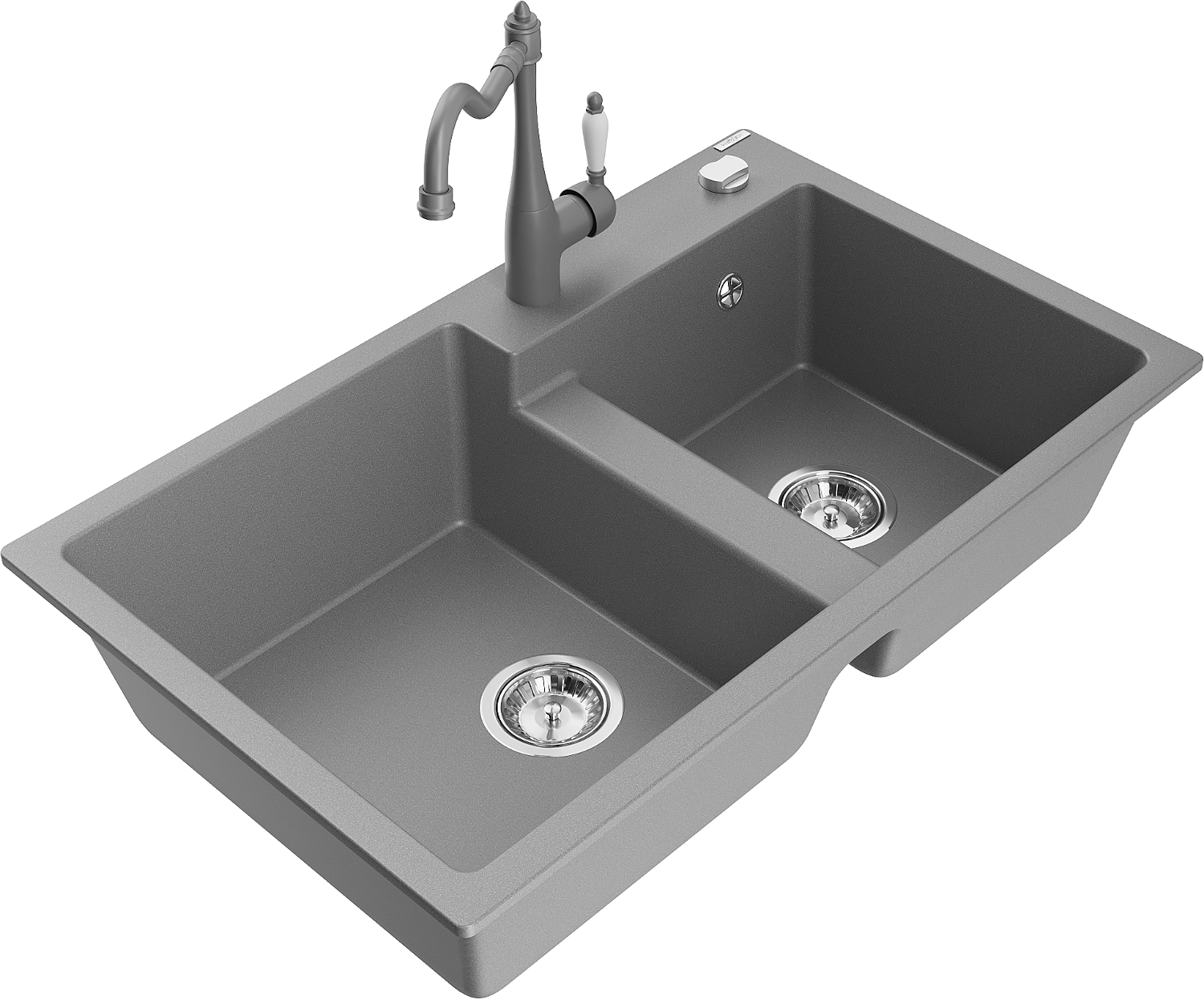 Mexen Tomas granite sink double-bowl with kitchen tap Carla, grey - 6516-71-670700-71