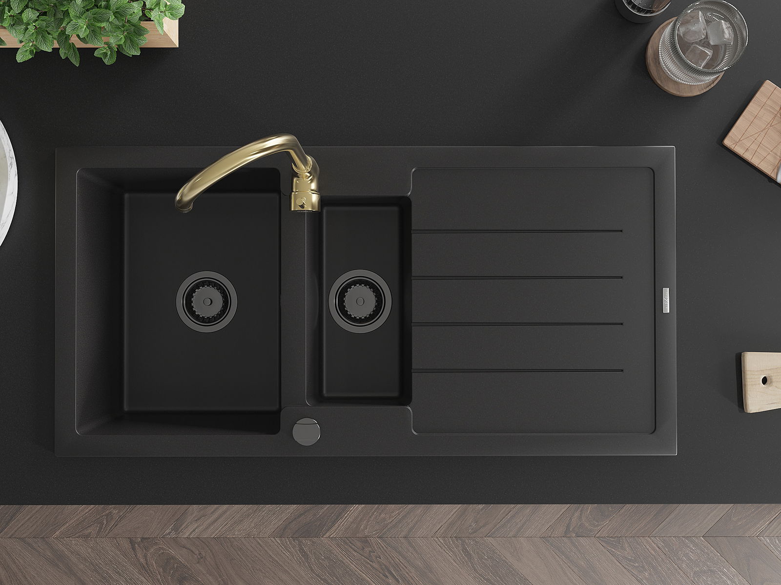 Choosing a sink with a draining board is a practical solution that allows you to set aside washed dishes or vegetables and fruits. The draining board makes daily cooking easier and helps maintain order in the kitchen.