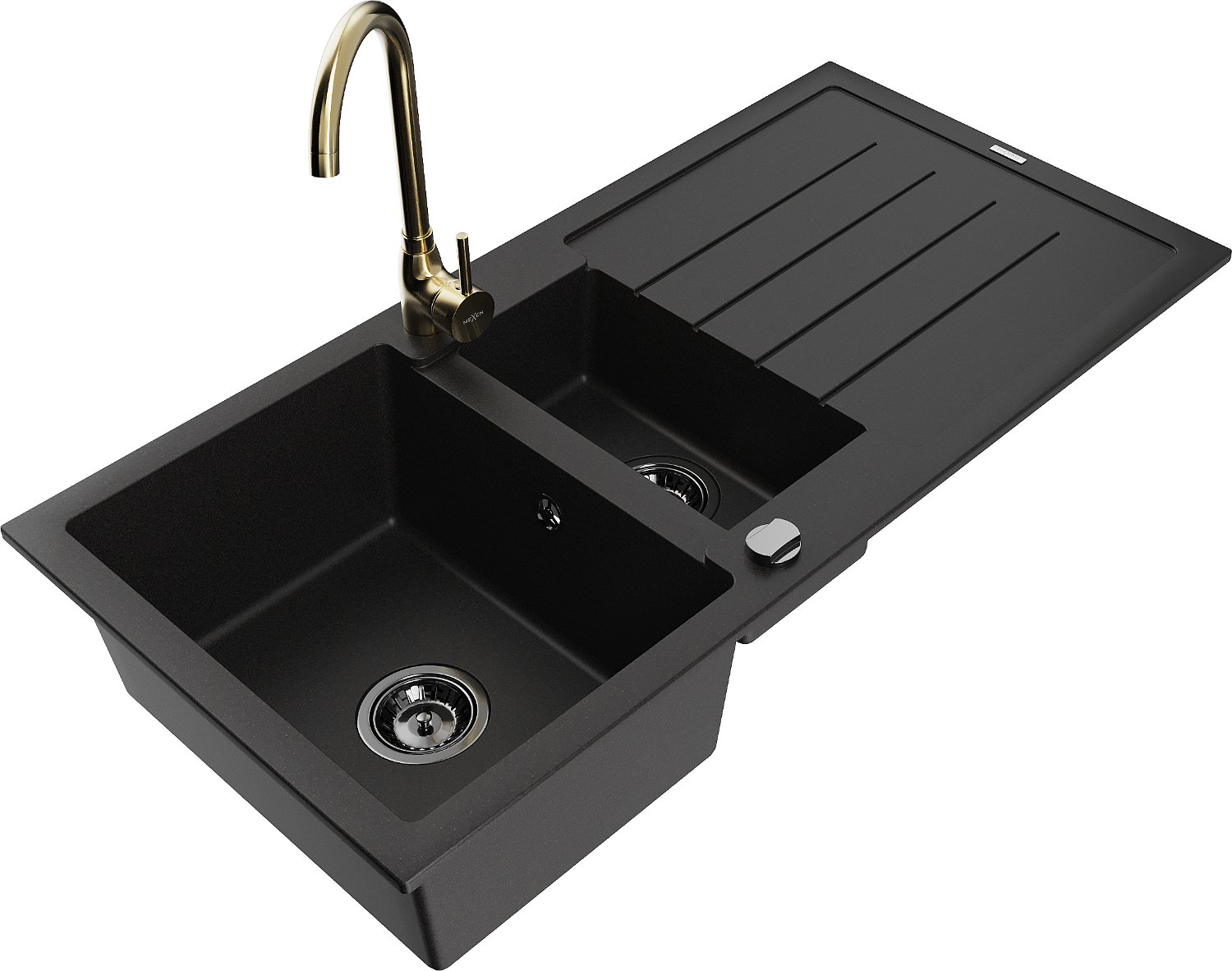 Mexen Andres granite sink 1.5-bowl with drainer and Telma kitchen tap, black - 6515-77-670200-50-B