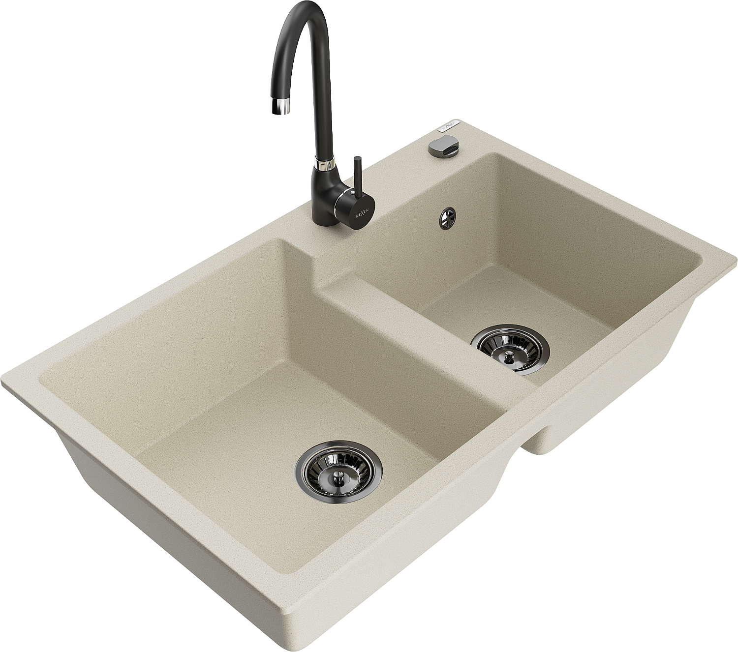 Mexen Tomas Granite 2-Bowl Sink with Telma Kitchen Tap, Beige - 6516-69-670200-70