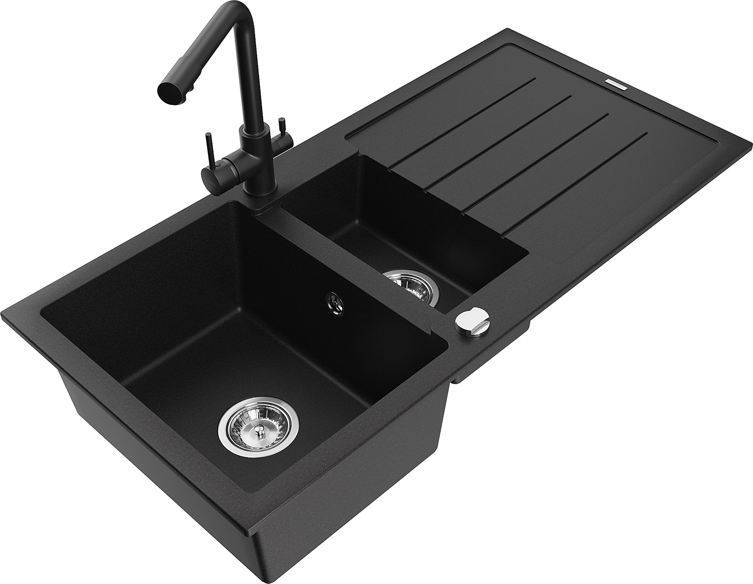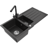 Mexen Andres granite sink 1.5-bowl with drainer and Duero kitchen tap, black - 6515-77-671600-70