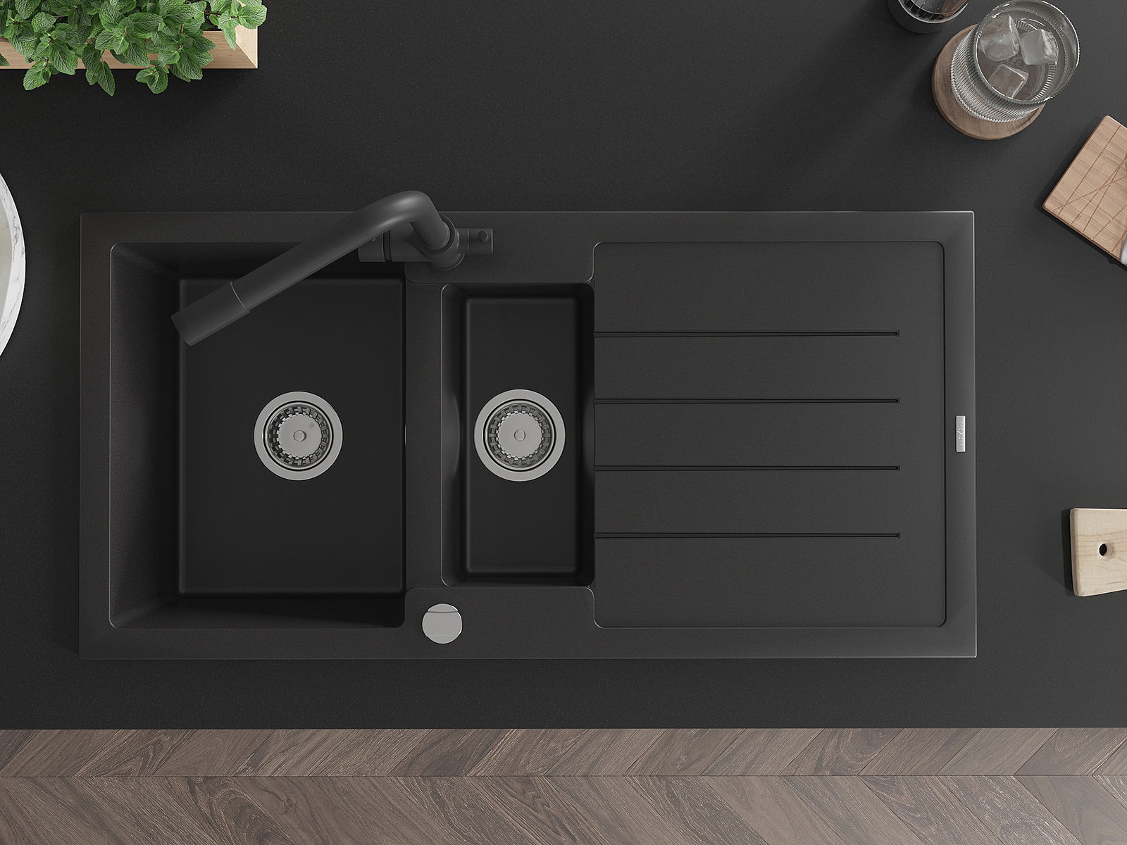 Choosing a sink with a draining board is a practical solution that allows you to set aside washed dishes or vegetables and fruits. The draining board makes daily cooking easier and helps maintain order in the kitchen.