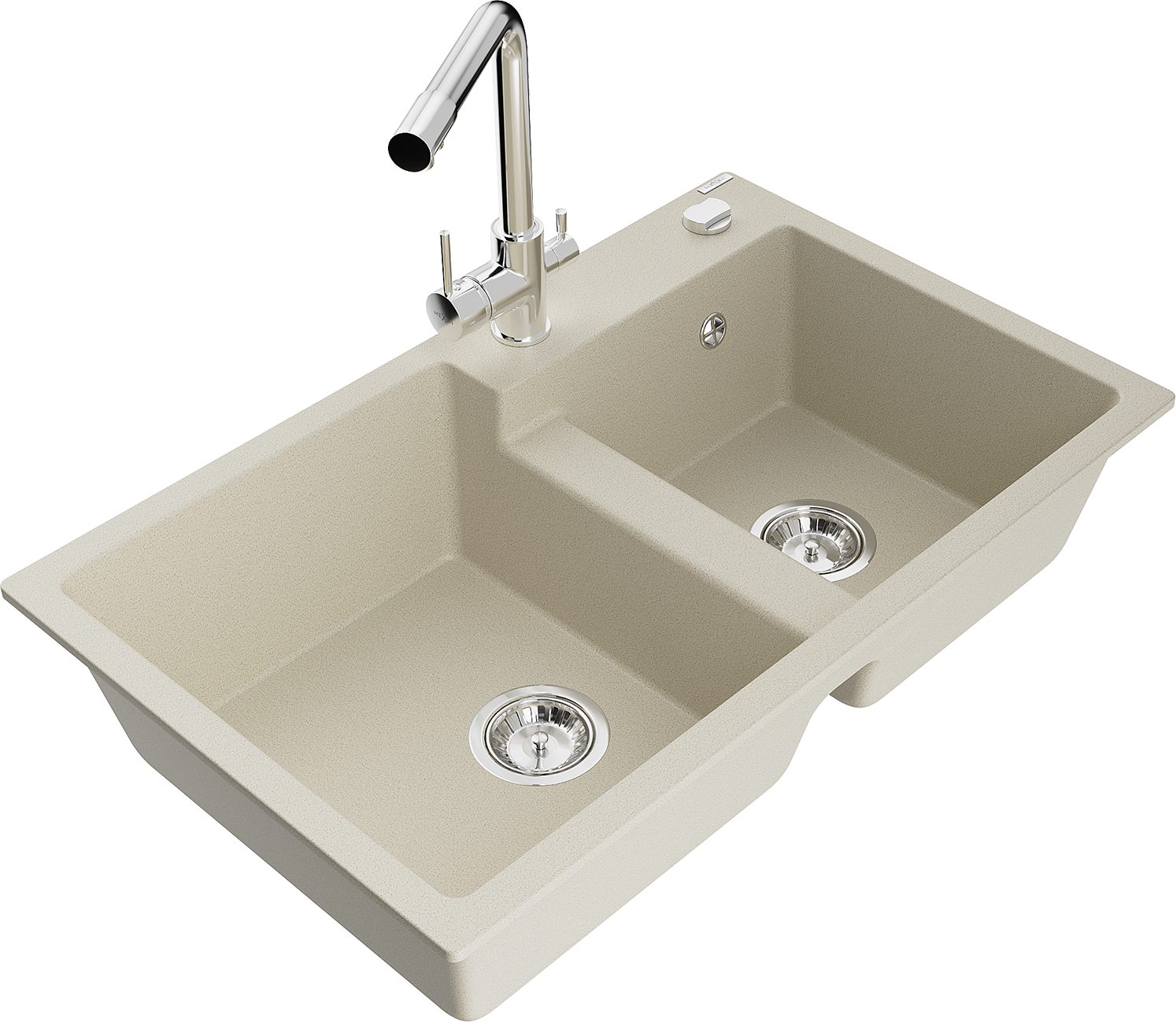 Mexen Tomas granite sink double-bowl with Duero kitchen tap, beige - 6516-69-671600-00