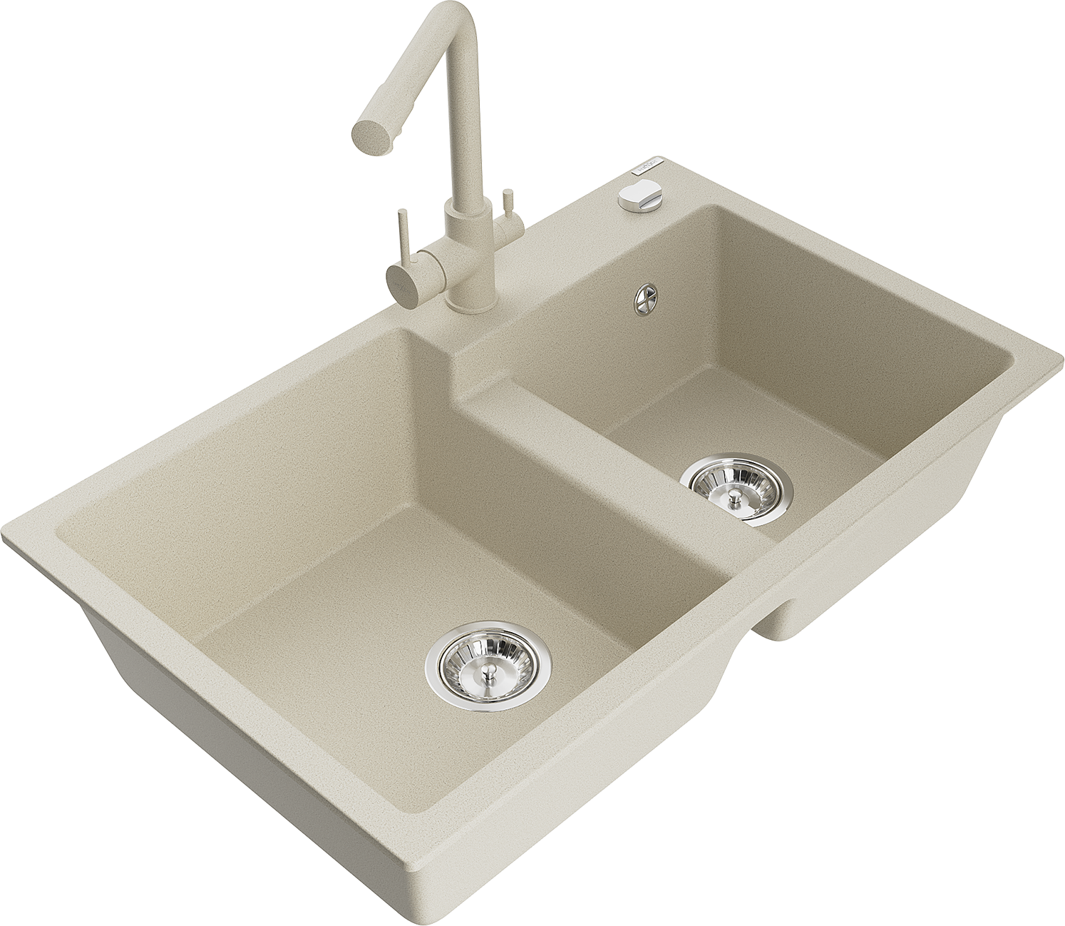 Mexen Tomas granite 2-bowl sink with Duero kitchen tap, beige - 6516-69-671600-69