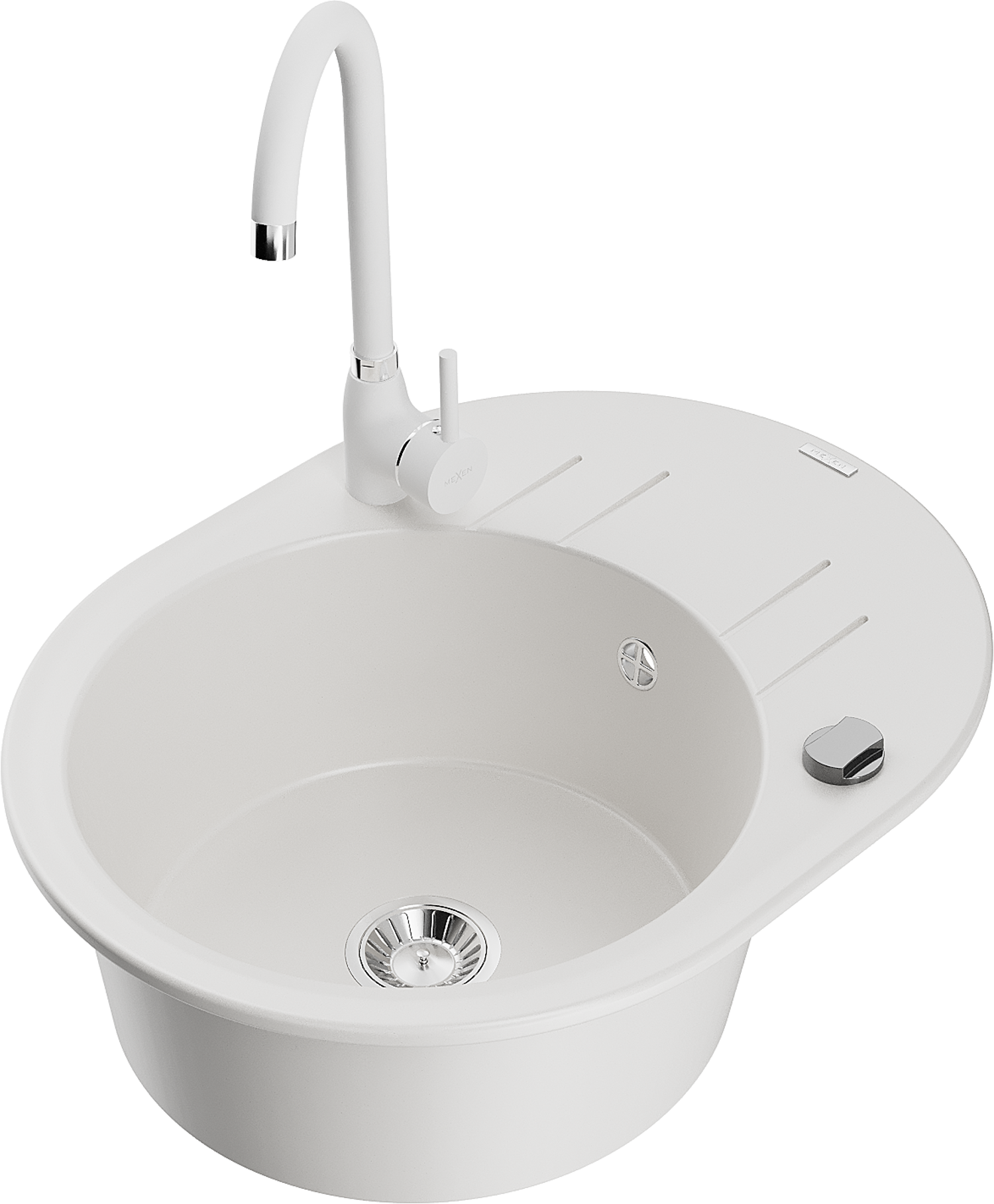 Mexen Kevin 1-bowl granite sink with drainer and Telma kitchen tap, white - 6517-20-670200-20