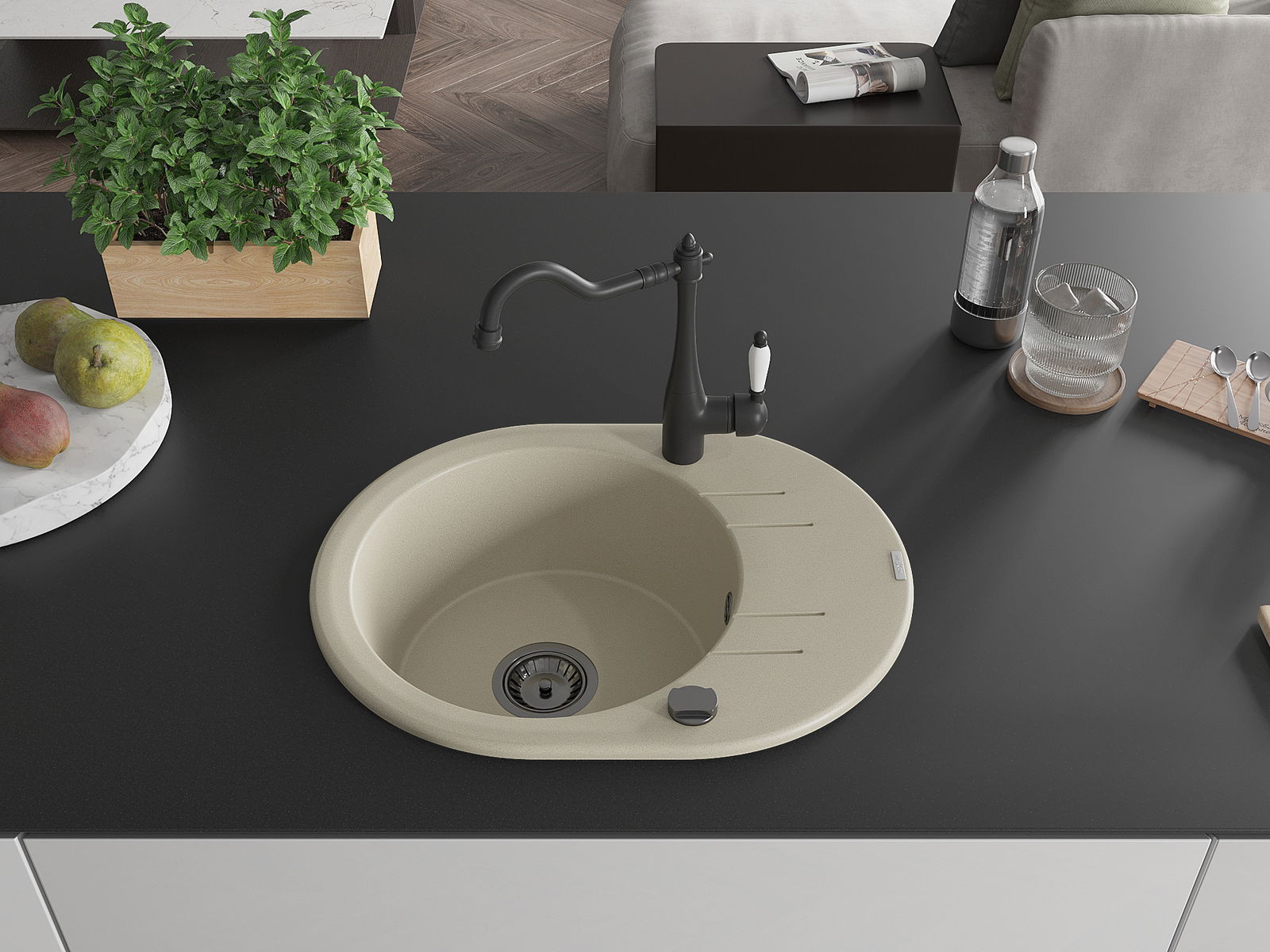 The sink is made from high-quality granite. It serves as an elegant and, above all, practical addition to any kitchen, regardless of its style. The high quality and durability of granite ensure many years of use.