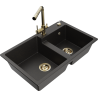 Mexen Tomas granite 2-bowl kitchen sink with Duero tap, grey - 6516-71-671600-50