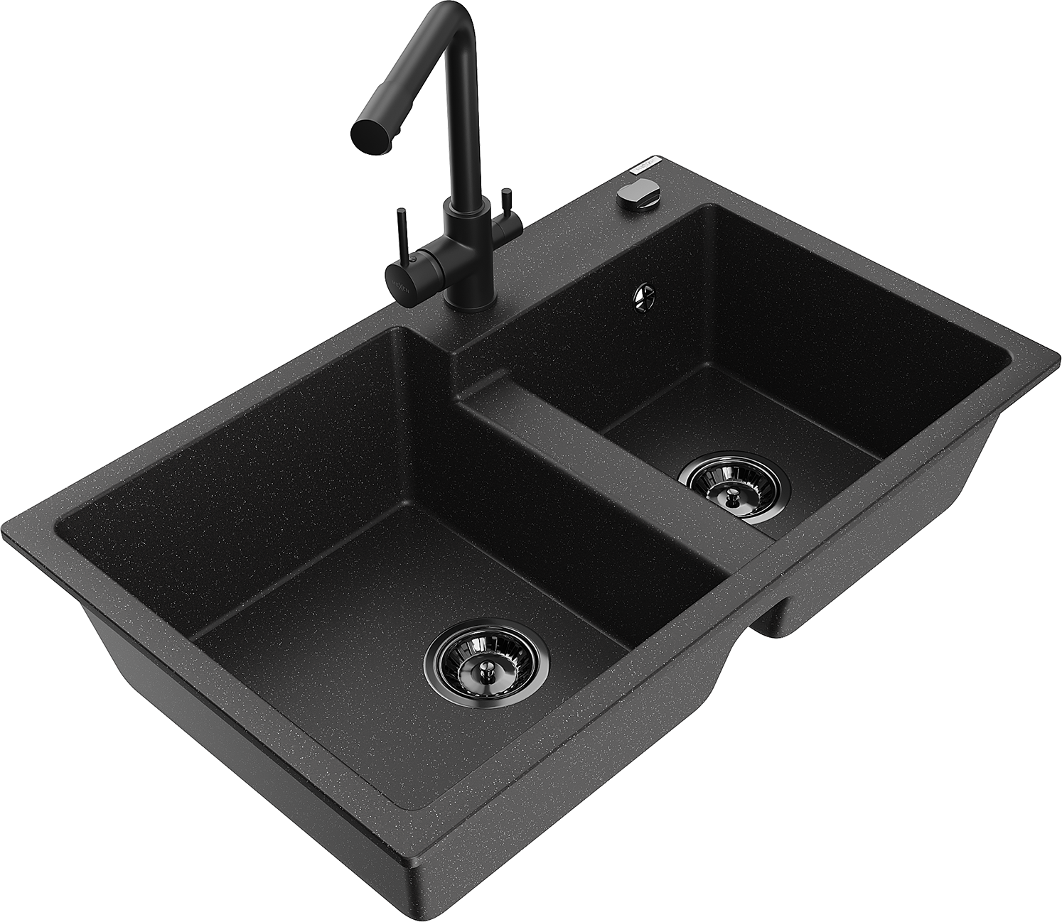 Mexen Tomas Granite Sink 2-Chamber with Duero Kitchen Tap, Black/Silver Metallic - 6516-73-671600-70-B