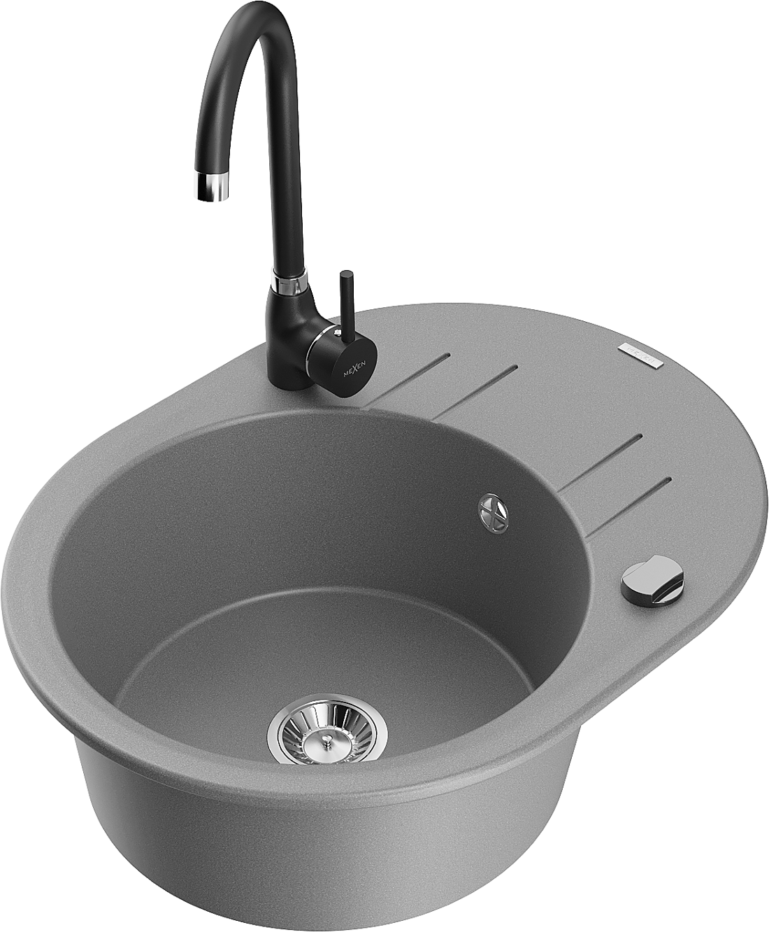 Mexen Kevin 1-bowl Granite Sink with Drainer and Telma Kitchen Tap, Grey - 6517-71-670200-70