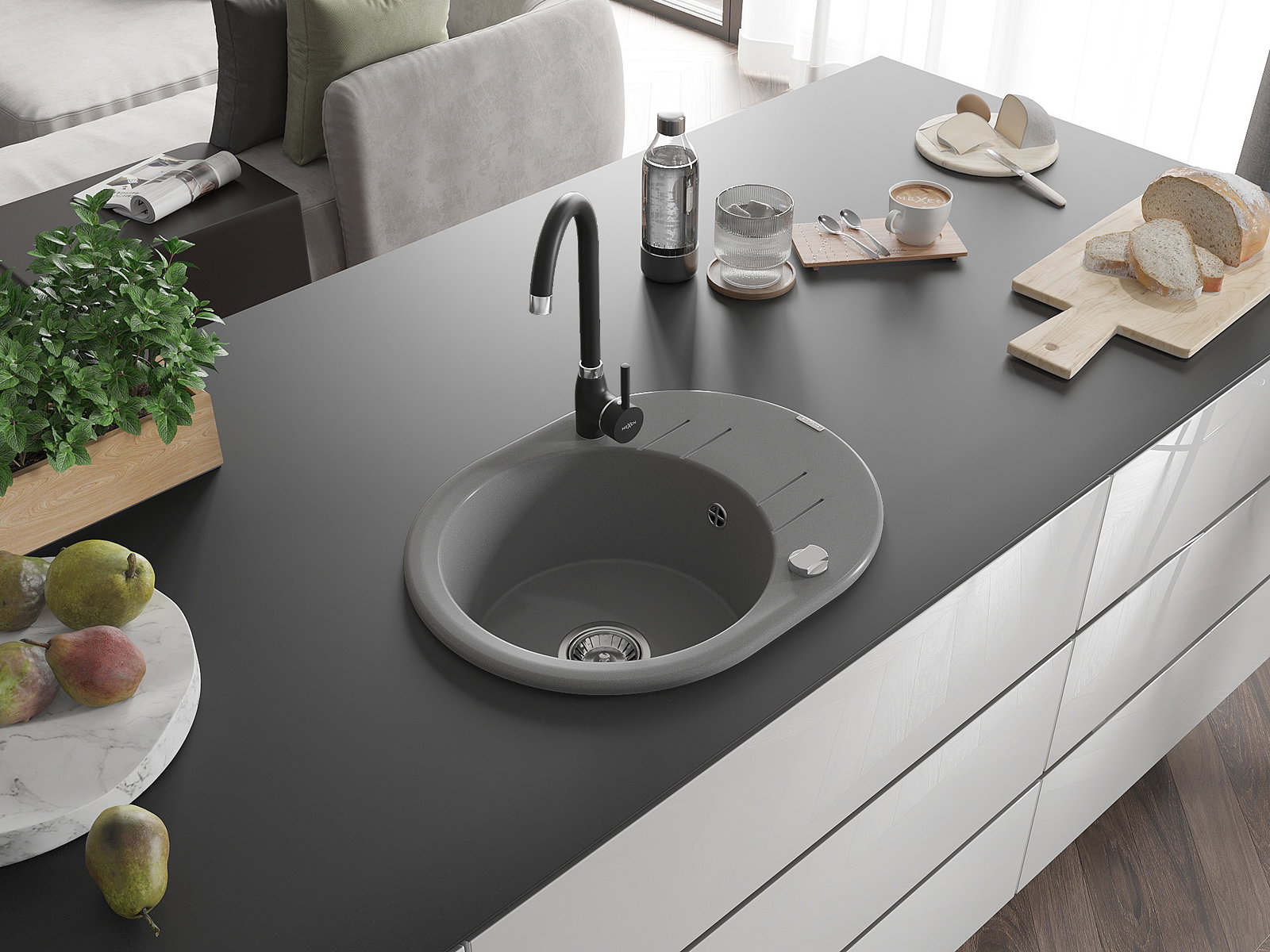 The sink is made from high-quality granite. It serves as an elegant and, above all, practical addition to any kitchen, regardless of its style. The high quality and durability of granite ensure many years of use.