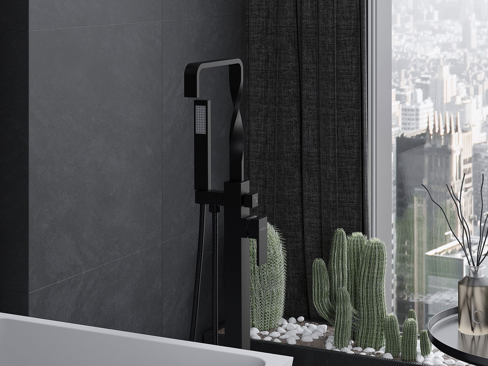 Mexen Avila freestanding bath tap, black - 75833-70