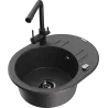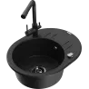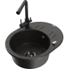 Mexen Kevin single-bowl granite sink with drainer and Duero kitchen tap, black/silver metallic - 6517-73-671600-70-B