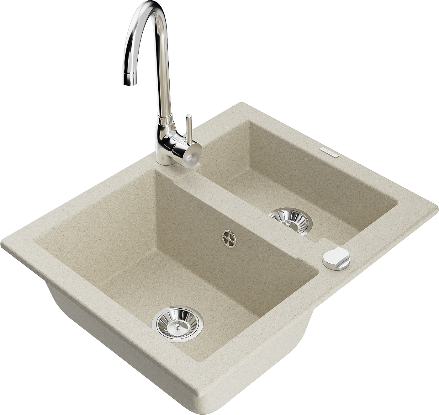 Mexen Carlos Granite Sink 1.5-Bowl with Telma Kitchen Tap, Beige - 6518-69-670200-00