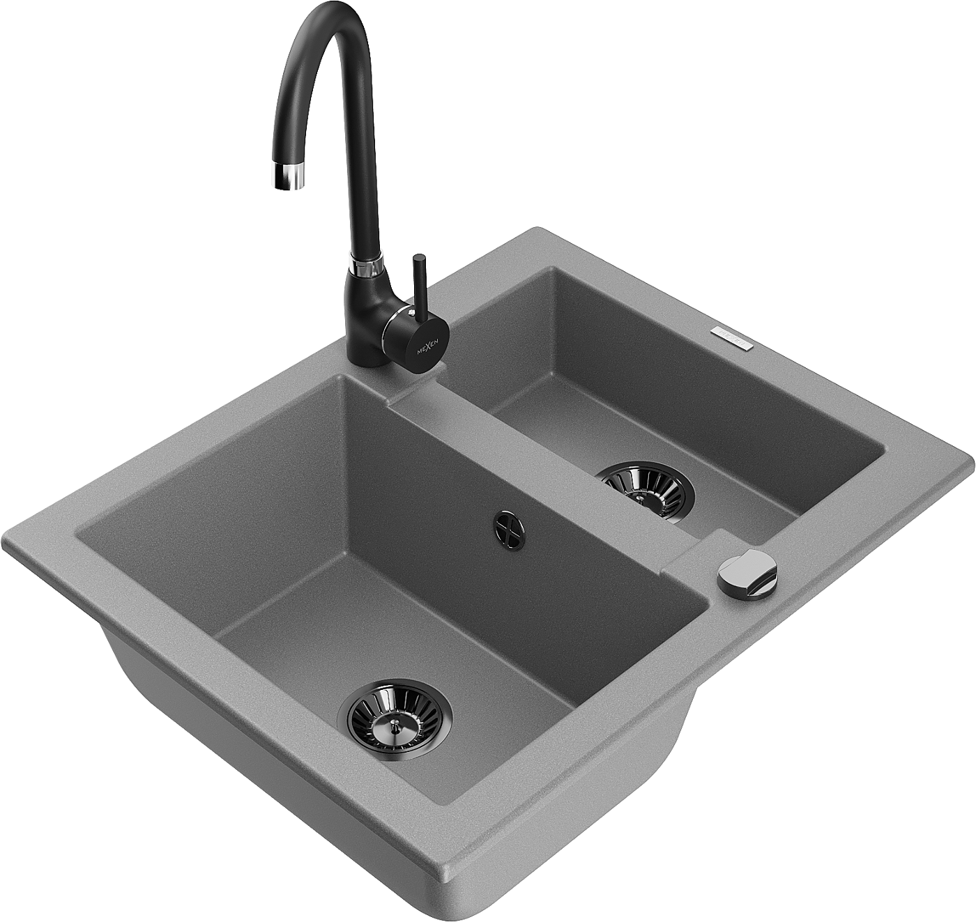 Mexen Carlos 1.5-bowl granite sink with Telma kitchen tap, grey - 6518-71-670200-70-B