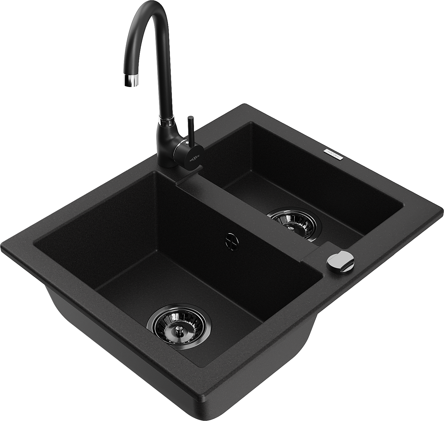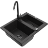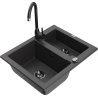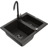 Mexen Carlos 1.5-bowl granite kitchen sink with Telma tap, black - 6518-77-670200-70-B