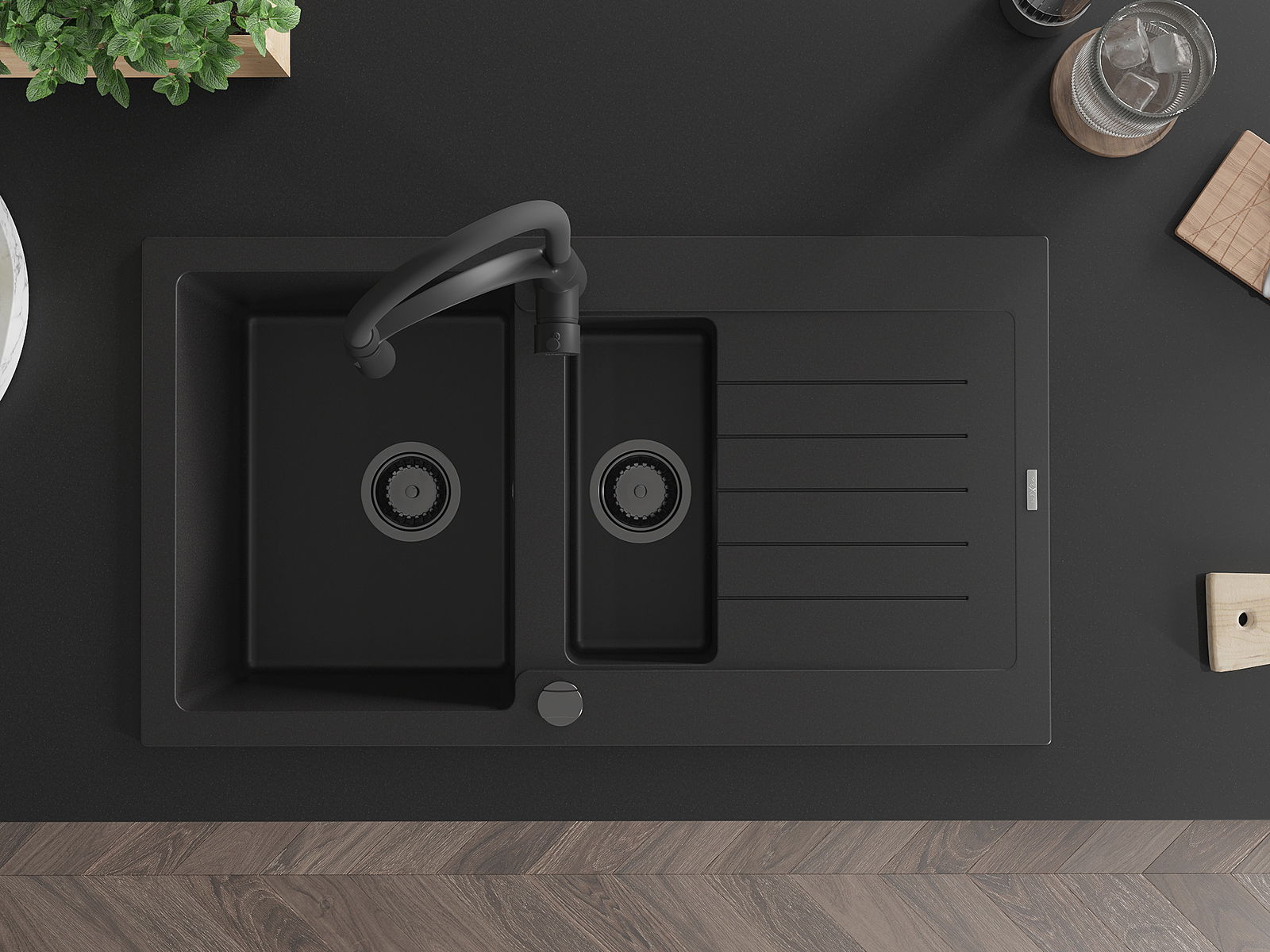 Choosing a sink with a draining board is a practical solution that allows you to set aside washed dishes or vegetables and fruits. The draining board makes daily cooking easier and helps maintain order in the kitchen.