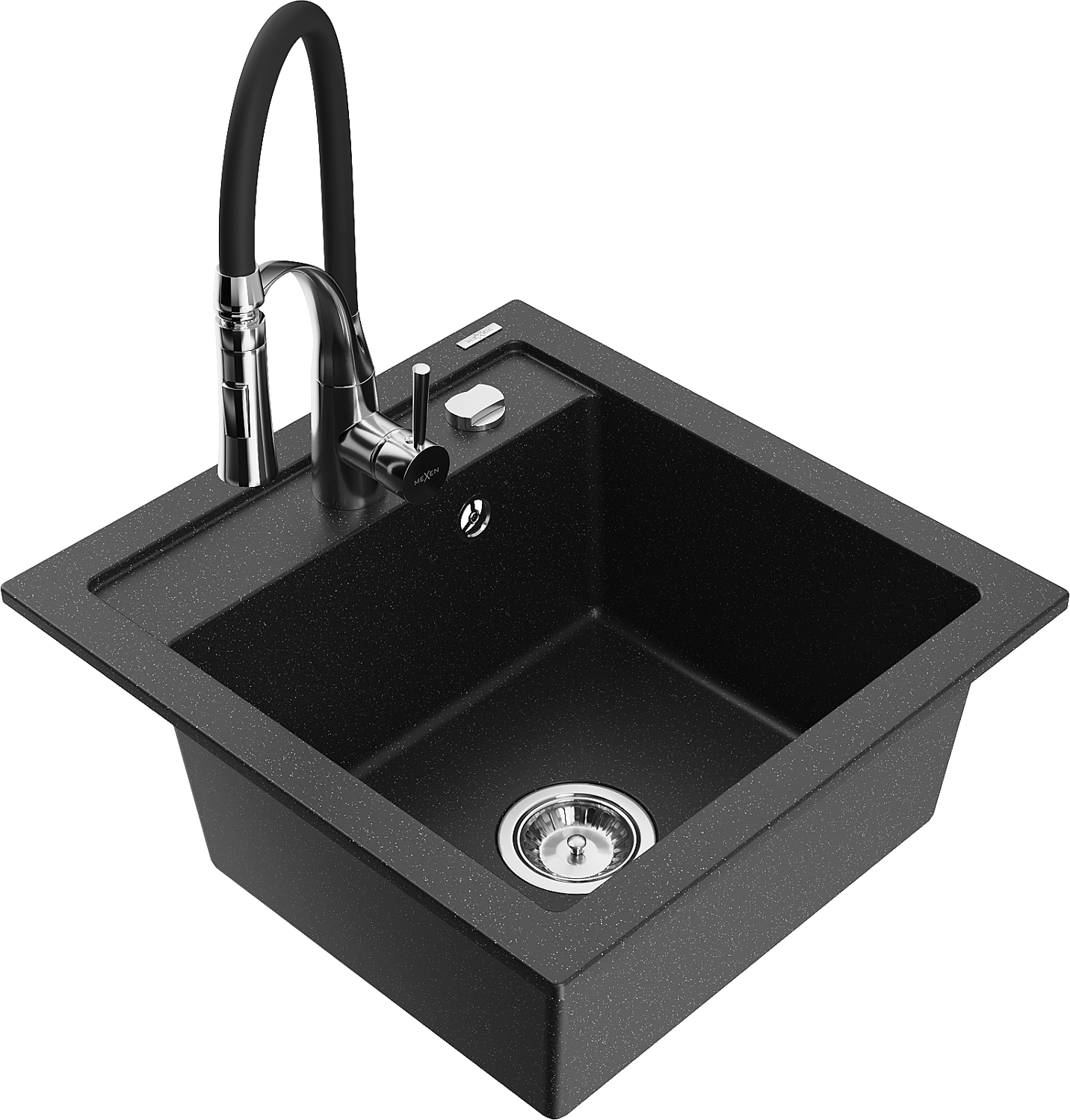 Mexen Vito 1-bowl granite sink with Aster kitchen tap, black/silver metallic- 6503-73-73450-07