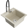The surface of the sink is resistant to stains and discolouration, making it easy to maintain cleanliness and retain its colour for a long time of use. An aesthetic and practical addition to any kitchen.