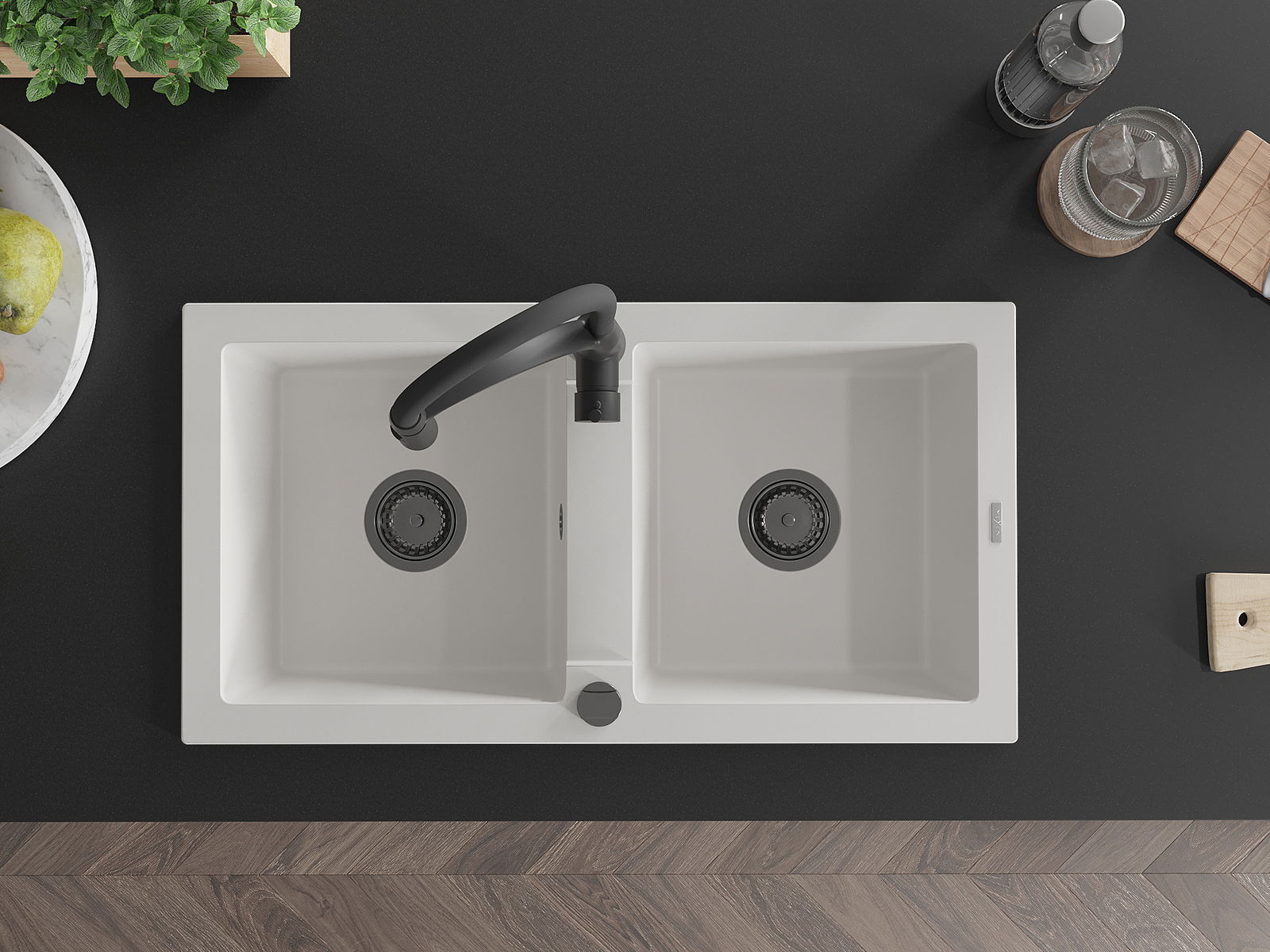 The surface of the sink is resistant to stains and discolouration, making it easy to maintain cleanliness and retain its colour for a long time of use. An aesthetic and practical addition to any kitchen.