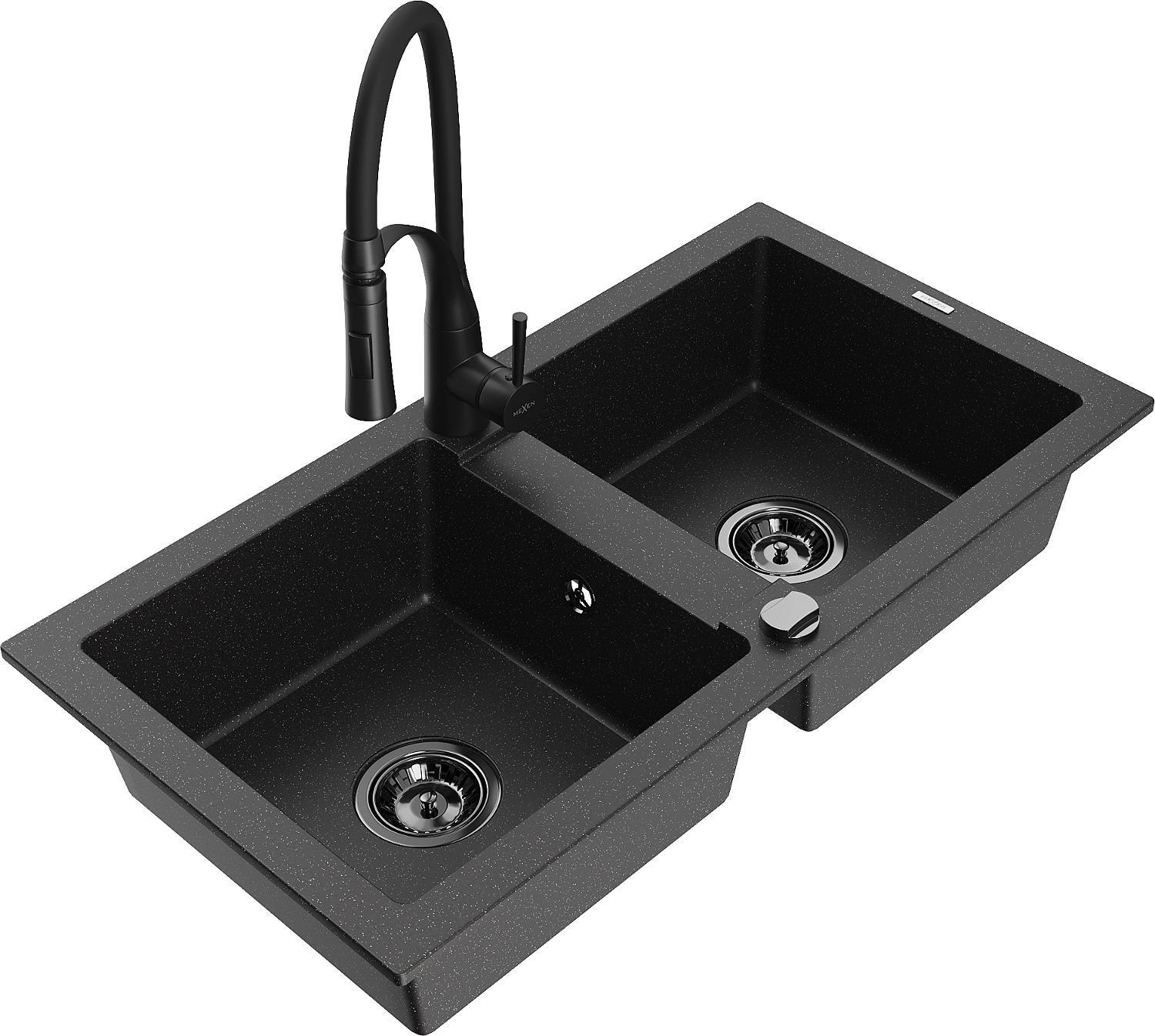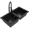 Mexen Mario granite sink 2-chamber with Aster kitchen tap, black/silver metallic - 6504-73-73450-70-B