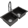 Mexen Mario granite sink 2-bowl with Aster kitchen tap, speckled black - 6504-76-73450-07