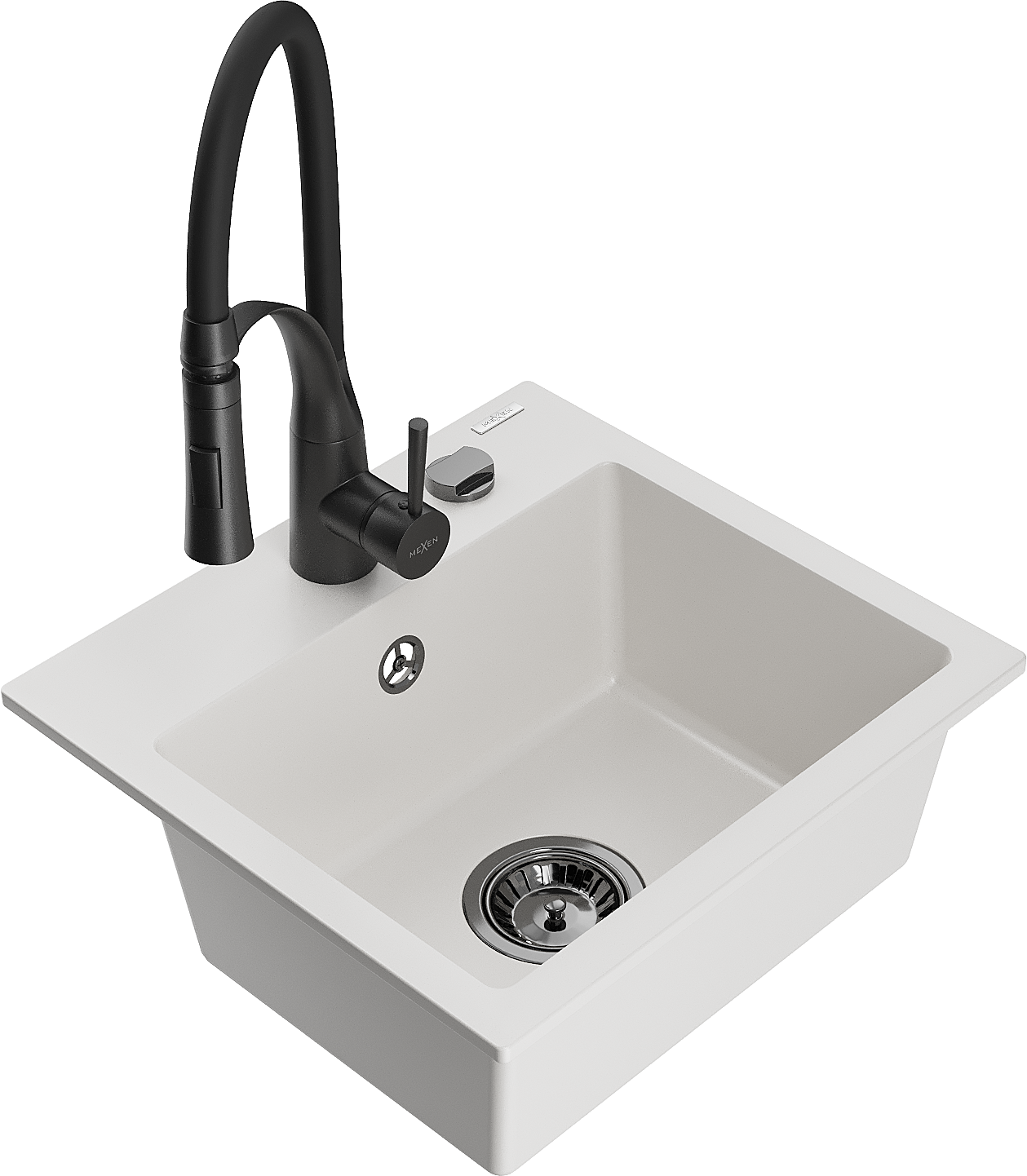 Mexen Milo granite kitchen sink 1-bowl with Aster kitchen tap, white - 6505-20-73450-70-B