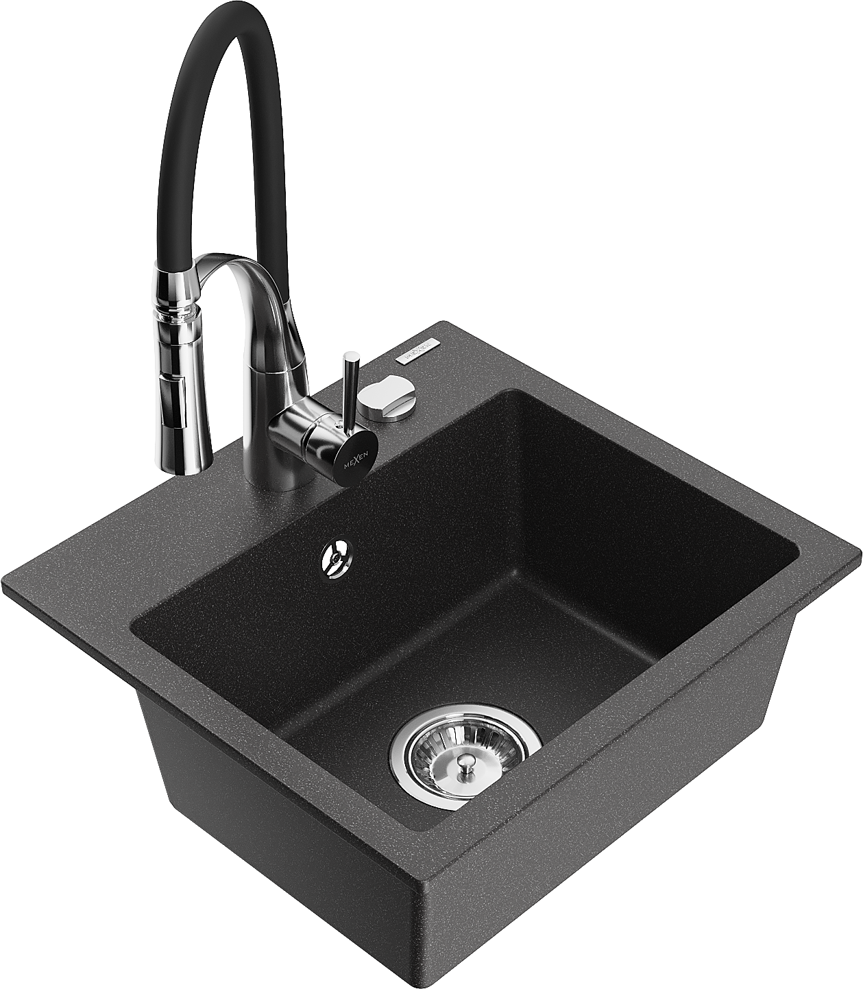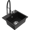Mexen Milo granite sink 1-bowl with Aster kitchen tap, black speckled - 6505-76-73450-07