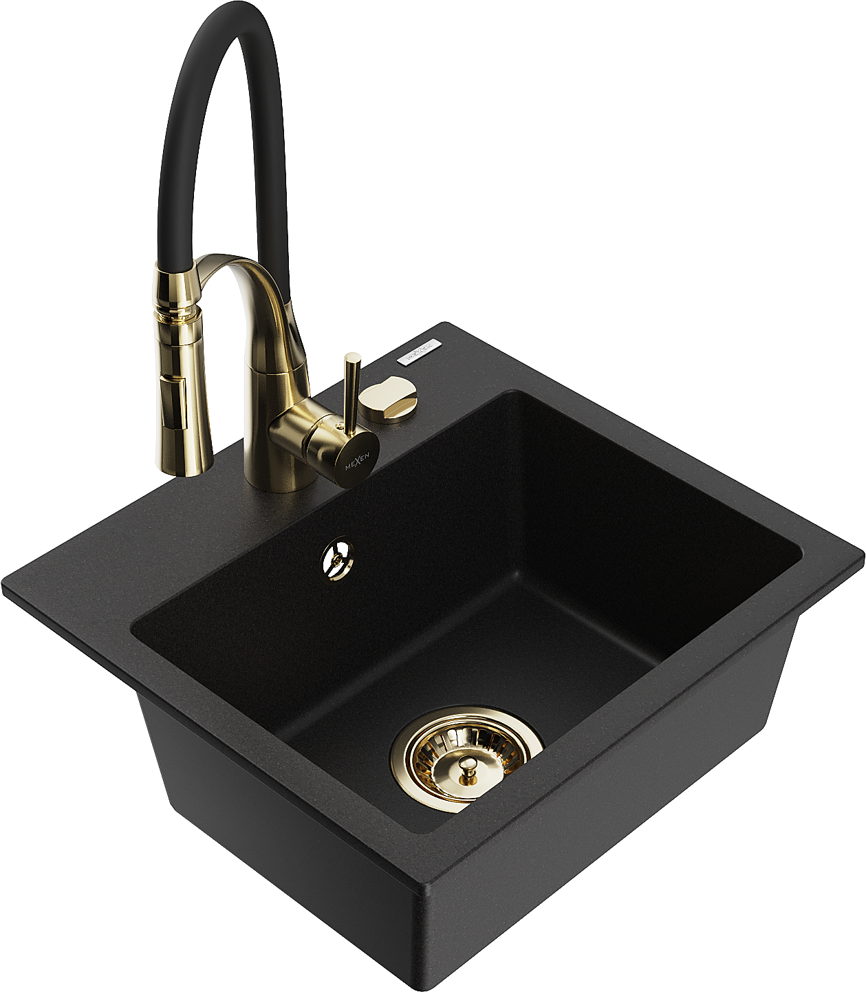 Mexen Milo granite sink 1-bowl with Aster kitchen tap, black - 6505-77-73450-57-G