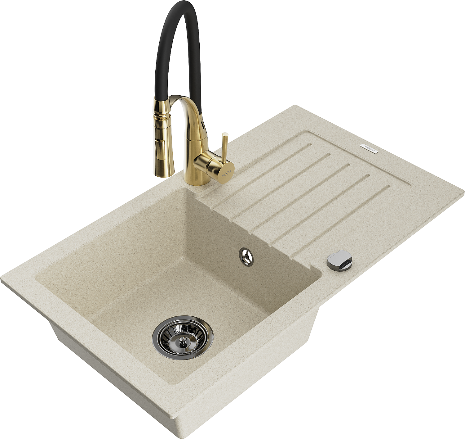 Mexen Pablo 1-bowl granite sink with drainer and Aster kitchen tap, beige - 6510-69-73450-57-B