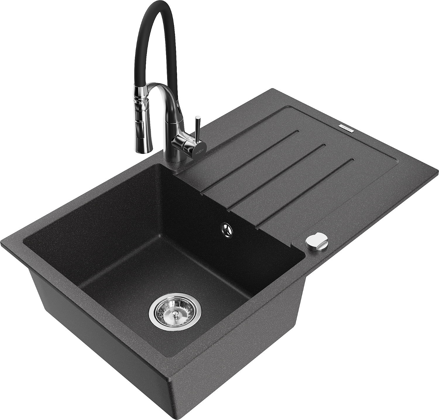 Mexen Bruno granite kitchen sink 1-bowl with drainer and Aster kitchen tap, speckled black - 6513-76-73450-07