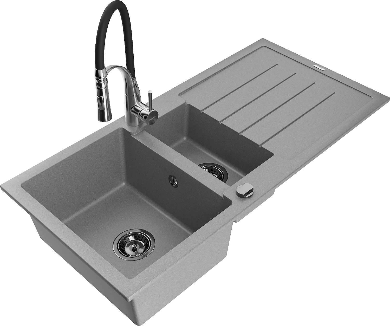 Mexen Andres 1.5-bowl granite sink with drainer and Aster kitchen tap, grey - 6515-71-73450-07-B