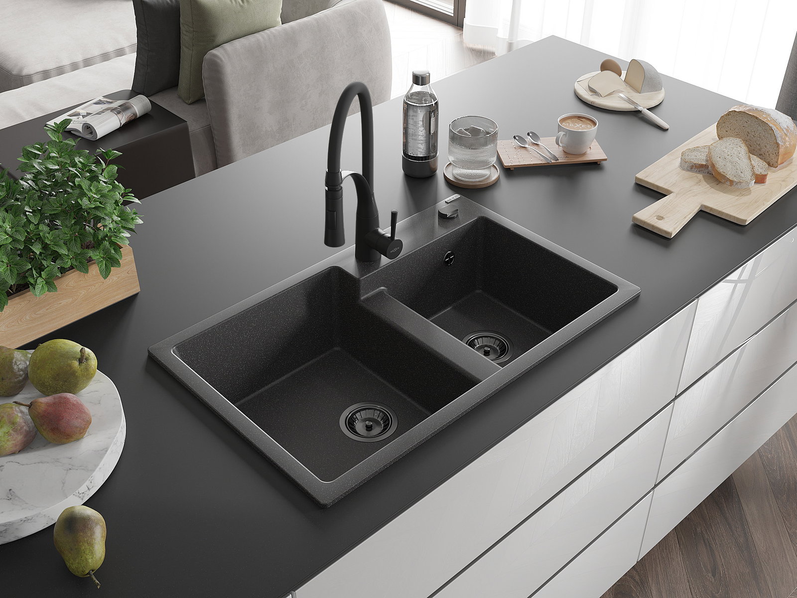 The sink is made from high-quality granite. It serves as an elegant and, above all, practical addition to any kitchen, regardless of its style. The high quality and durability of granite ensure many years of use.